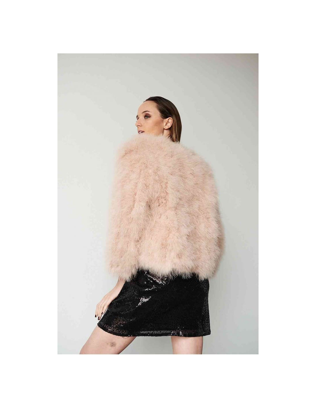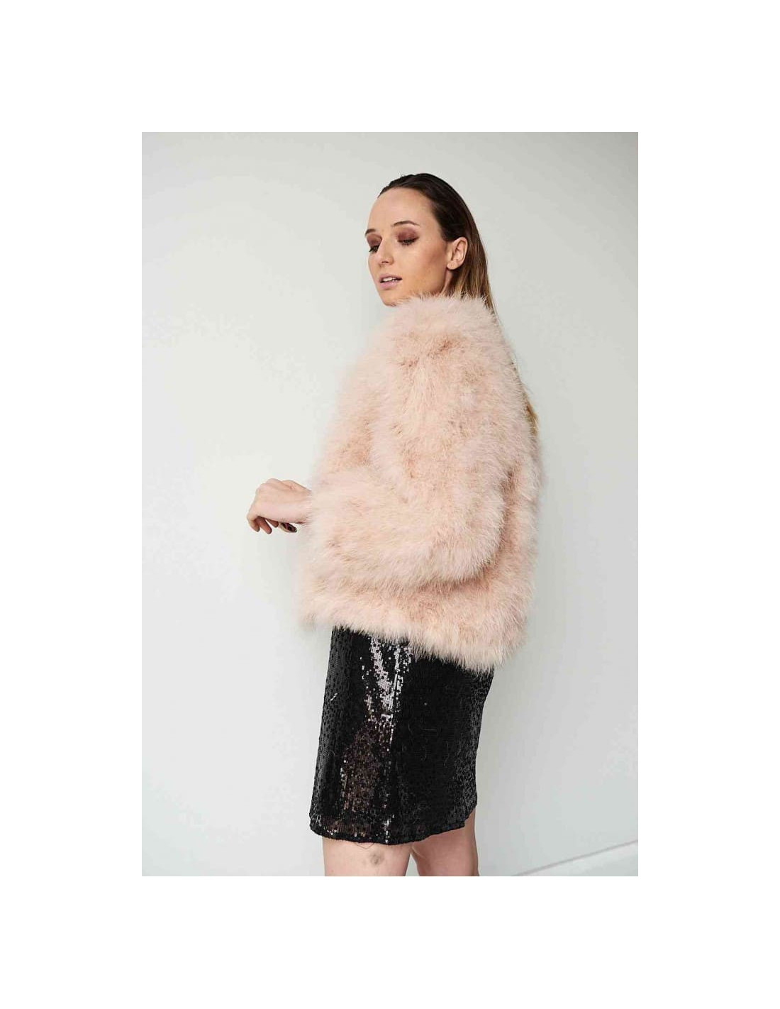 Chaqueta de plumas de avestruz rosa palo | Complementos Invitada