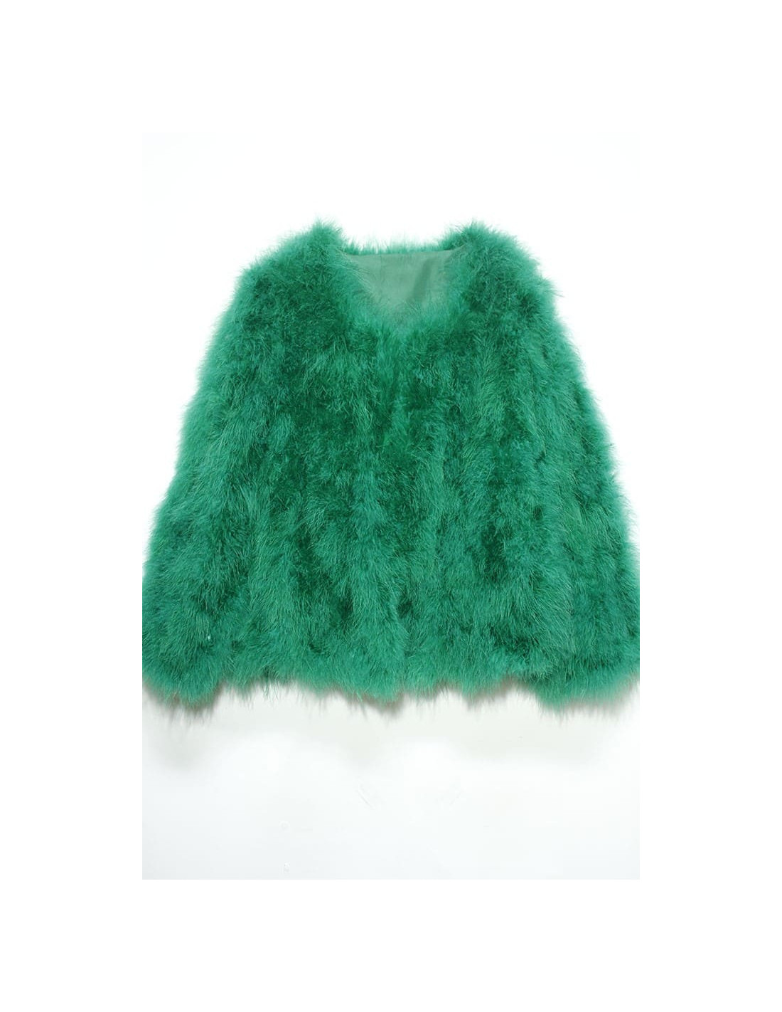 Chaqueta de plumas de avestruz verde