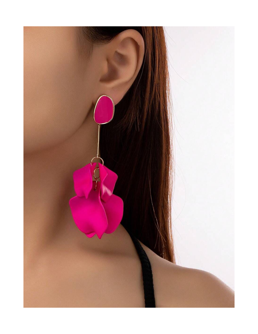 Estos pendientes largos de pétalo colgante están elaborados en metacrilato con un diseño vibrante en rojo. Los pendientes cuentan con un colgante de pétalos en capas, creando un efecto visual llamativo y delicado al mismo tiempo. El material de aleación de hierro asegura durabilidad, mientras que el cierre de presión los hace fáciles y cómodos de llevar. Con un largo de 9.7 cm y un ancho de 3.5 cm, estos pendientes son el complemento ideal para agregar un toque de color a cualquier look formal o de fiesta. Perfectos para eventos como bodas, galas o celebraciones especiales, combinan ligereza con un estilo moderno y sofisticado. El color rojo y su diseño fluido de pétalos convierten a estos pendientes en una pieza clave para realzar cualquier atuendo.