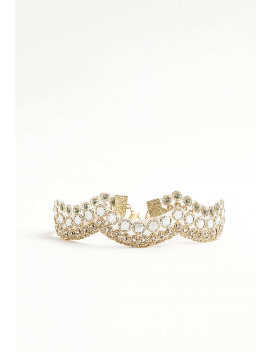 Choker dorado de invitada con espejos artesanales y diseño ondulado