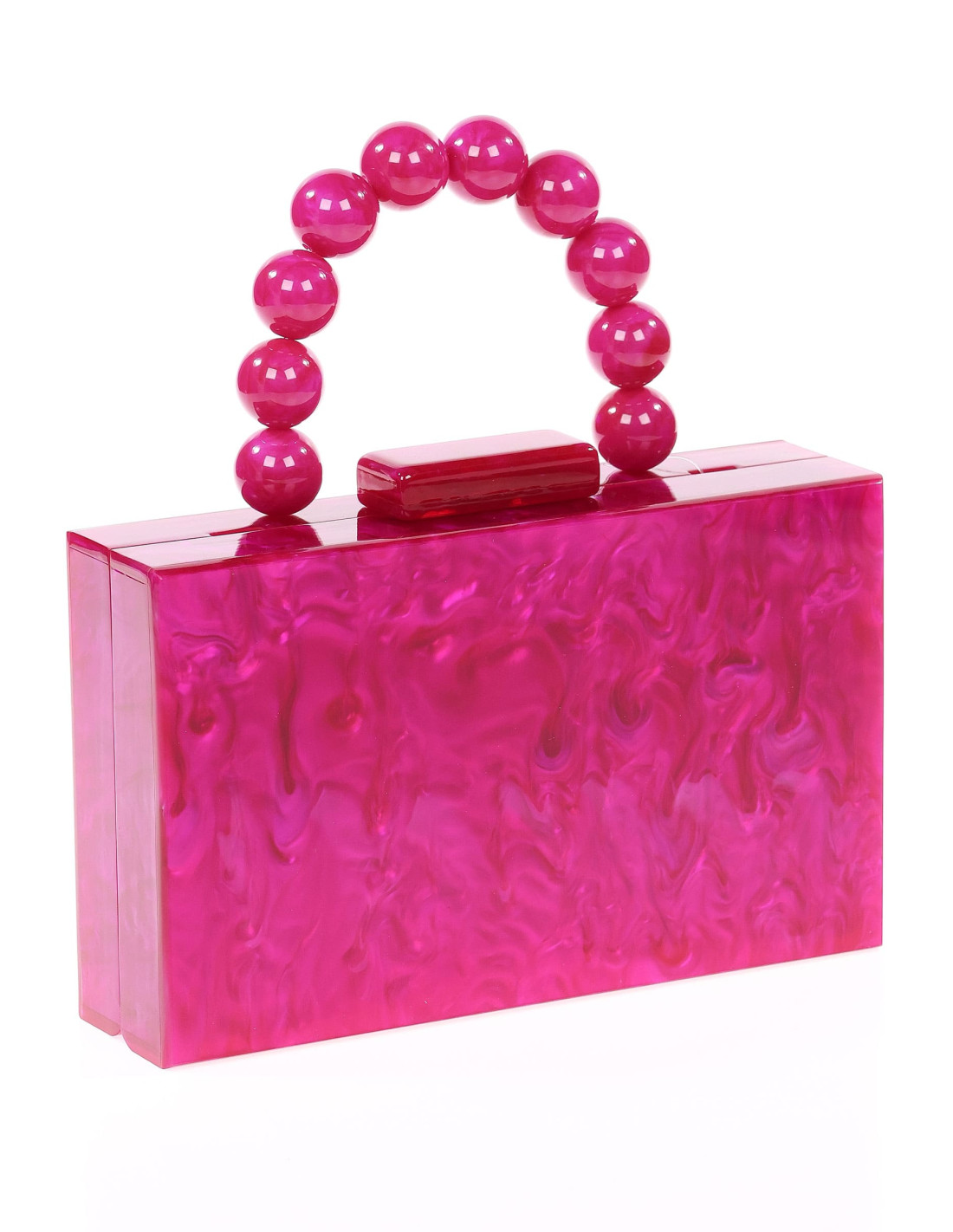 Este clutch de fiesta de diseño rígido con detalles de asa en esferas es el accesorio perfecto para añadir un toque de elegancia a cualquier look de noche o evento formal. Su estructura de nácar brillante y su diseño exclusivo se convierten en el complemento ideal para acompañar vestidos largos o trajes de noche, creando un contraste sofisticado y atractivo. Además, su diseño versátil permite combinarlo con una amplia gama de colores y estilos, ya sea con atuendos en tonos neutros para destacar el clutch como protagonista, o con prendas de tonos más vibrantes para complementar el look.