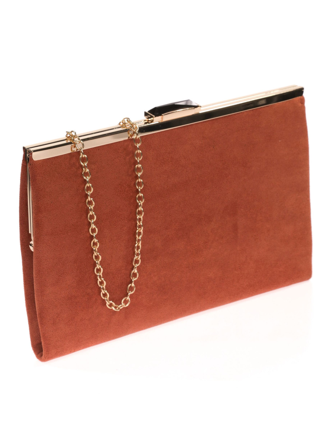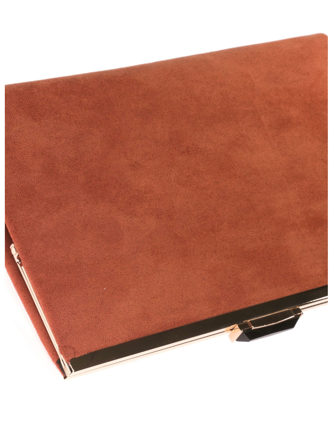 Cartera de mano de fiesta efecto ante con detalle metálico dorado