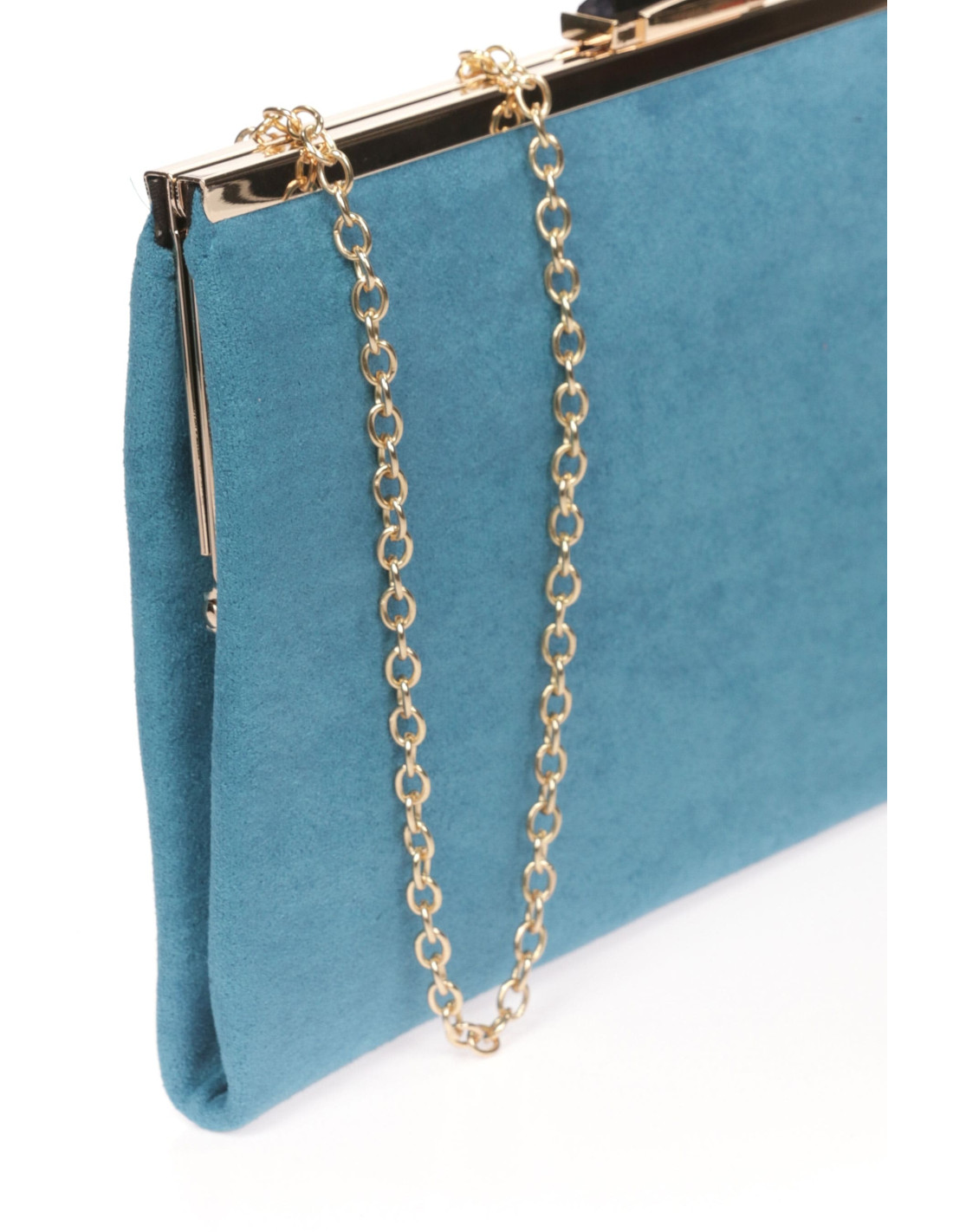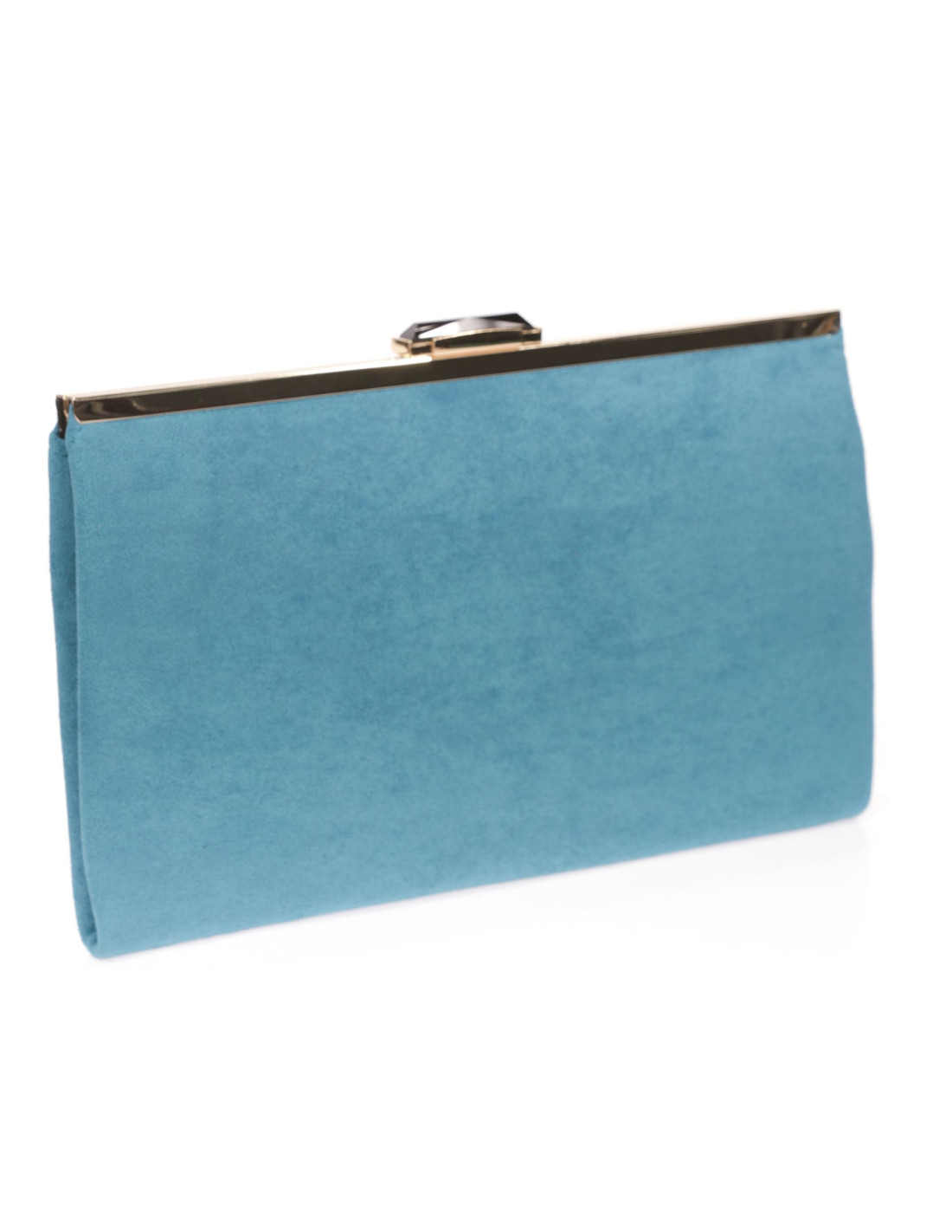 Cartera de mano de fiesta efecto ante con detalle metálico dorado