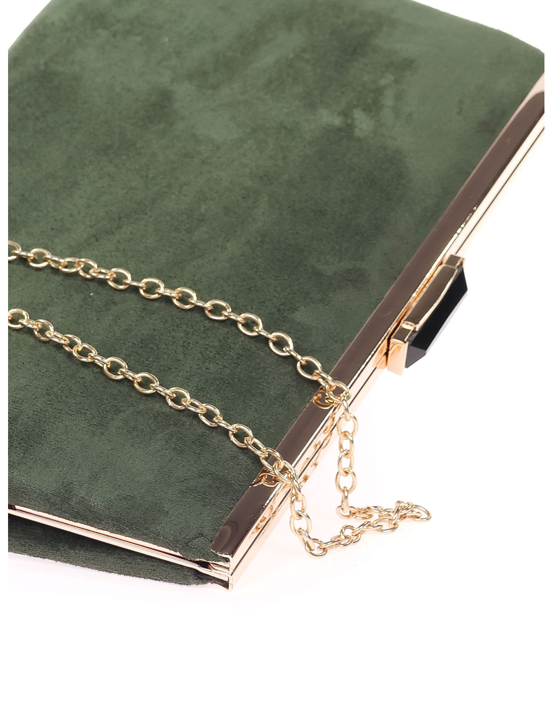 Cartera de mano de fiesta efecto ante con detalle metálico dorado