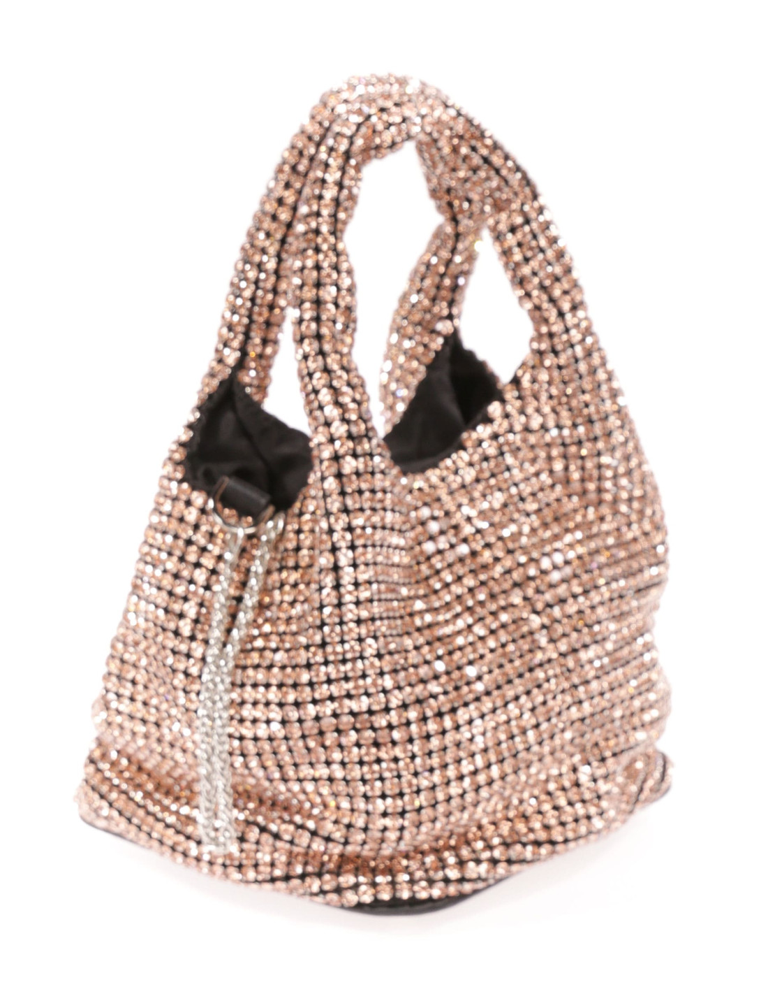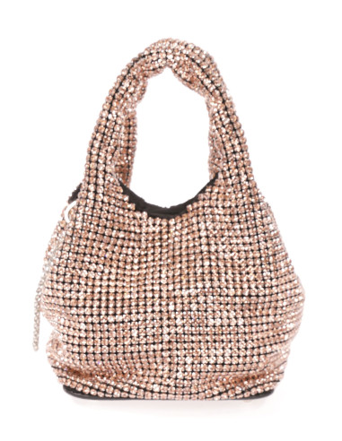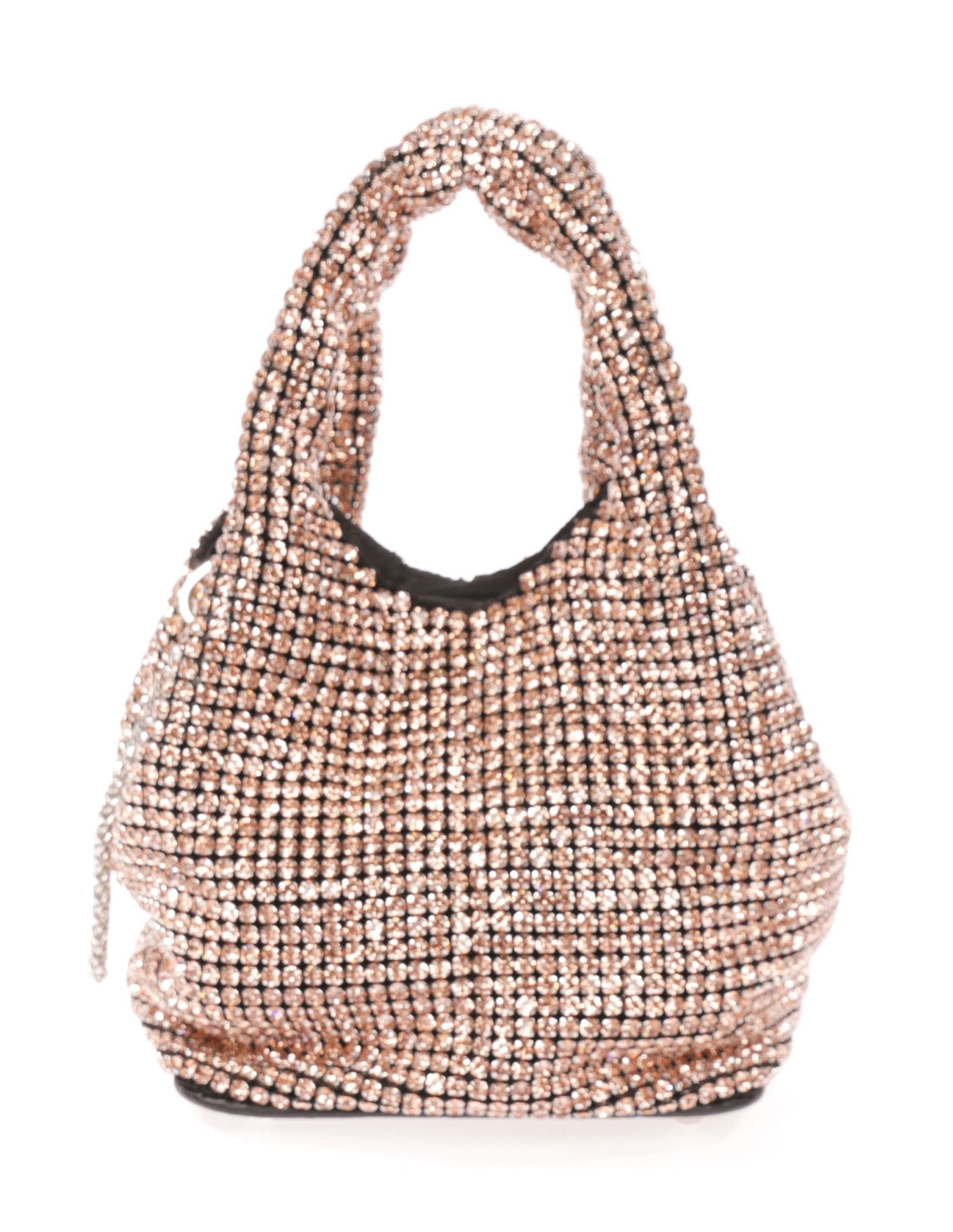 Bolso bombonera con forma de saco de pedrería con cristales bicolor