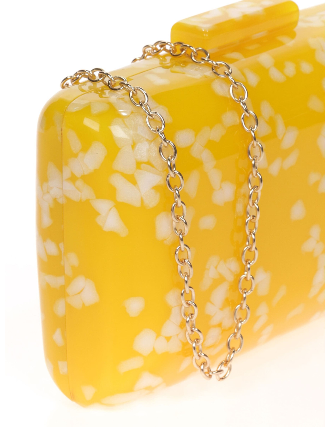 ¡Destaca en tus eventos más especiales con nuestro clutch de fiesta de símil nácar! Este elegante complemento esencial para invitadas viene con una cadena para llevar al hombro, brindándote comodidad y estilo sin igual.