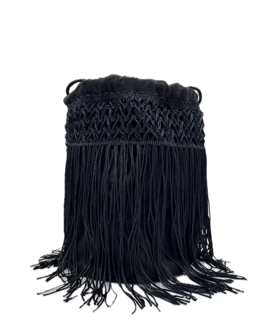 Bombonera de antelina con flecos y Cadena | Complementos Invitada