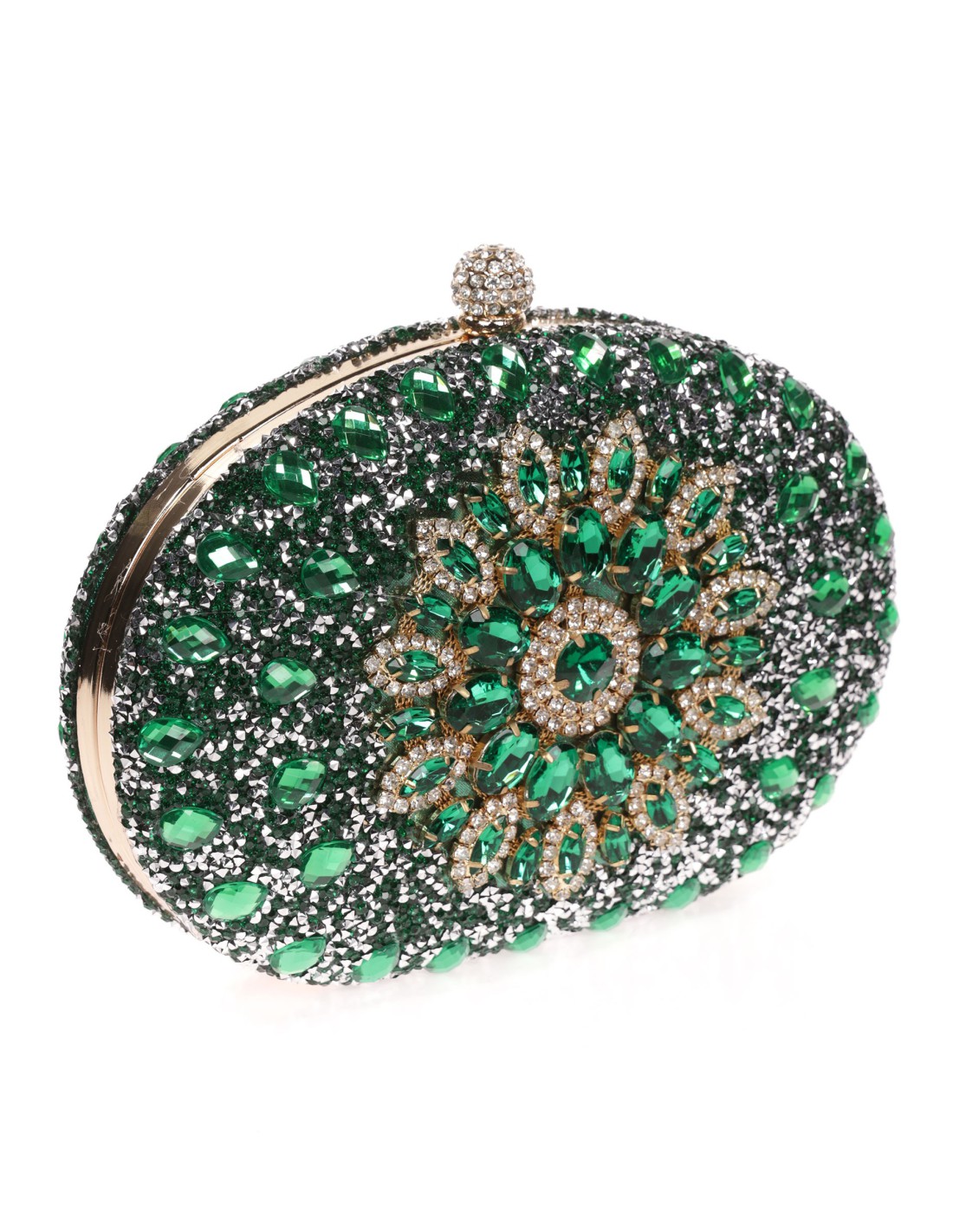 Bolso joya de fiesta ovalado con incrustaciones de cristales