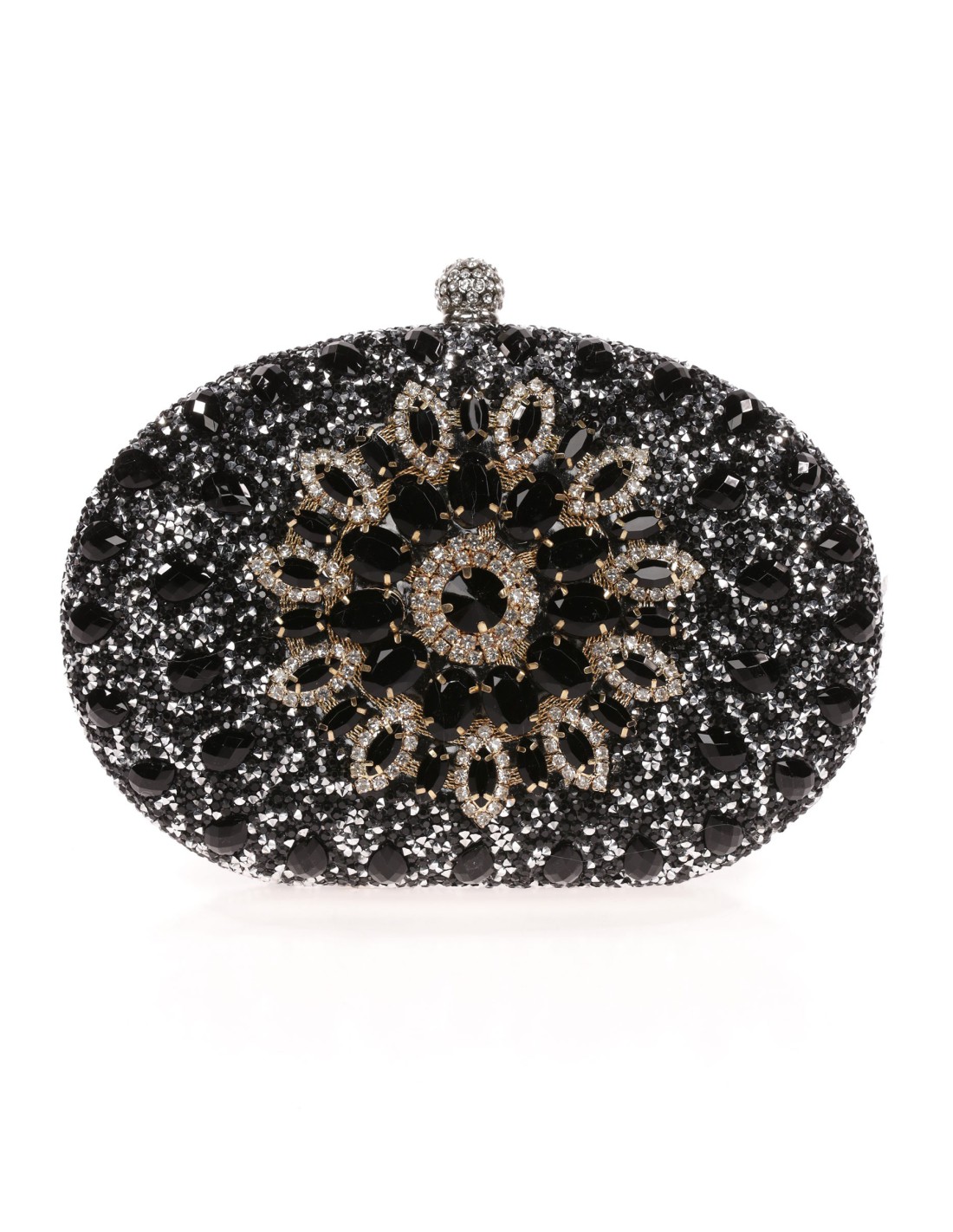 Bolso joya de fiesta ovalado con incrustaciones de cristales