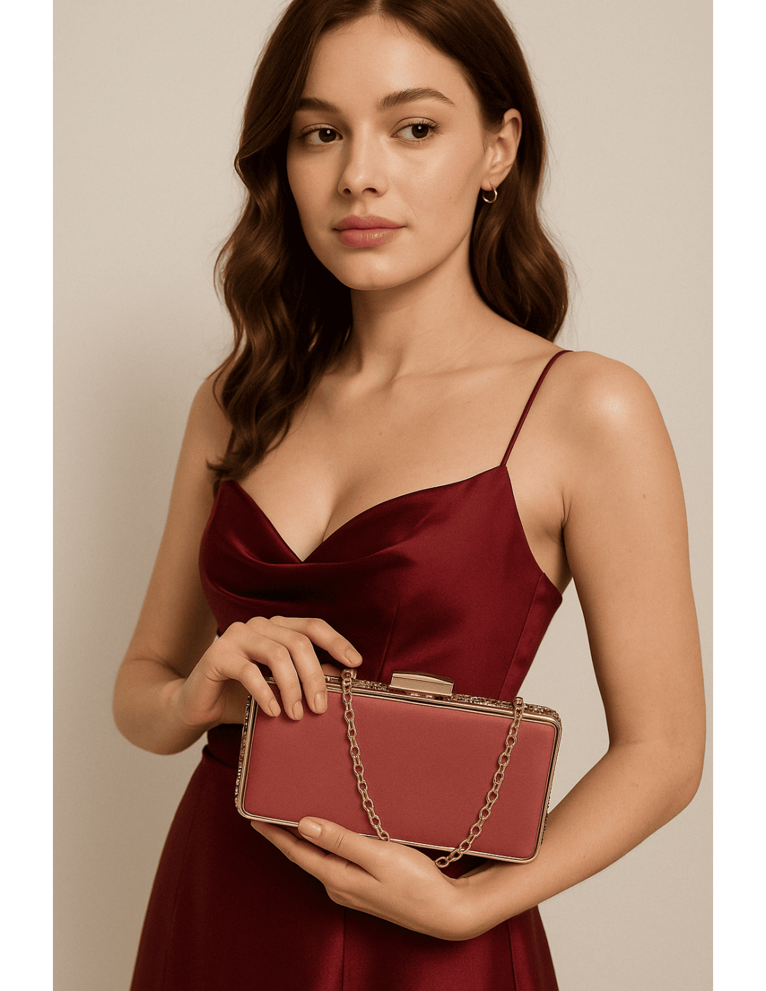 Si buscas un bolso que combine sofisticación y un toque de brillo, este clutch de fiesta con pedrería en los laterales es la opción perfecta. Su diseño elegante lo convierte en el complemento ideal para bodas, cenas y eventos especiales.