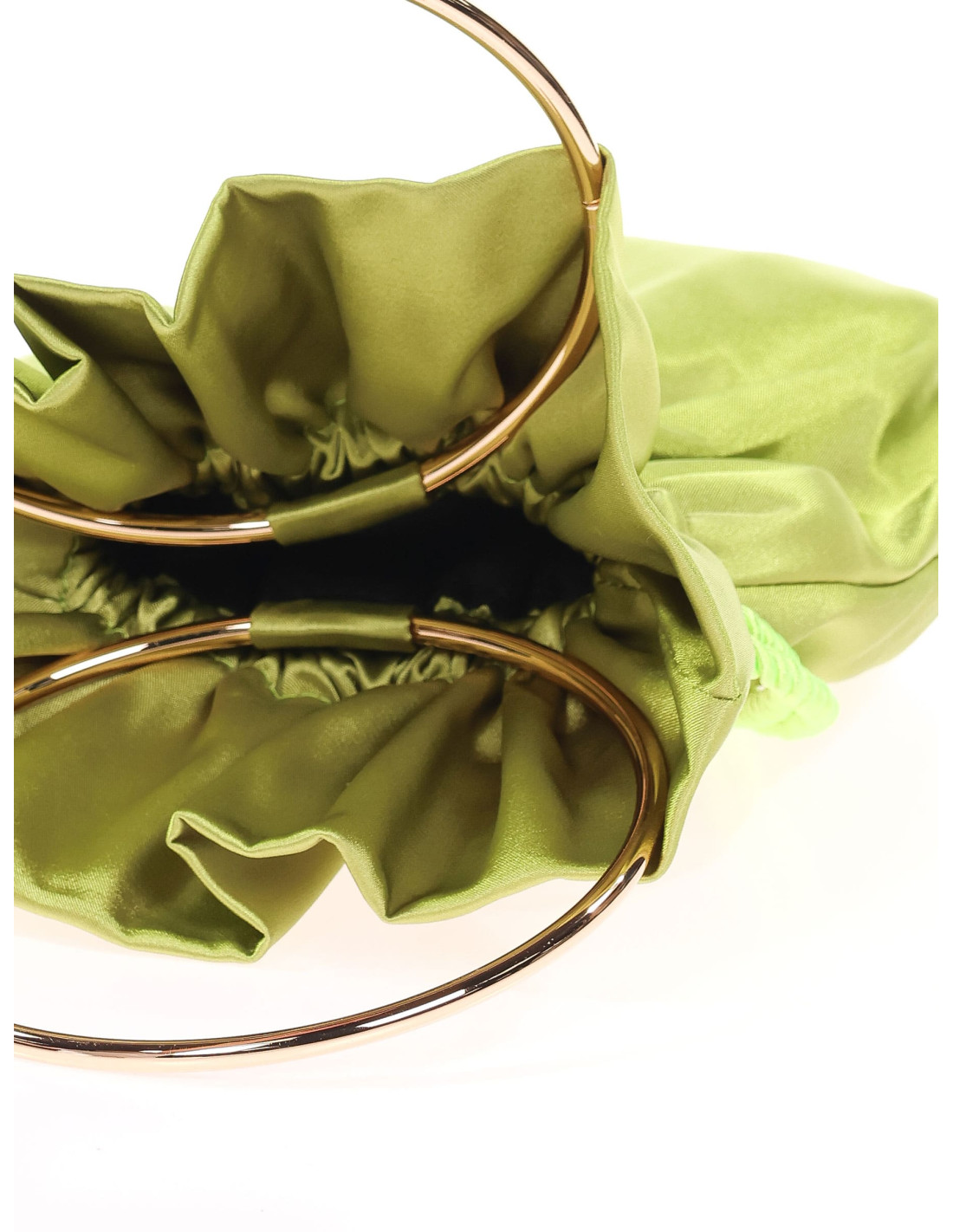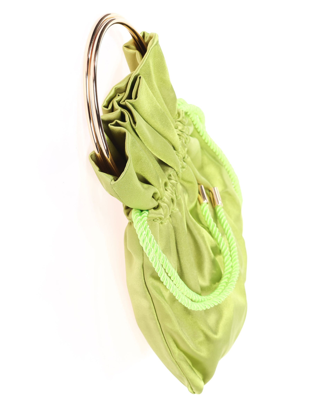Este bolso bombonera de fiesta en raso es el accesorio imprescindible para elevar cualquier look en eventos especiales. Su diseño fruncido y su tejido satinado lo convierten en un complemento sofisticado y con estilo.