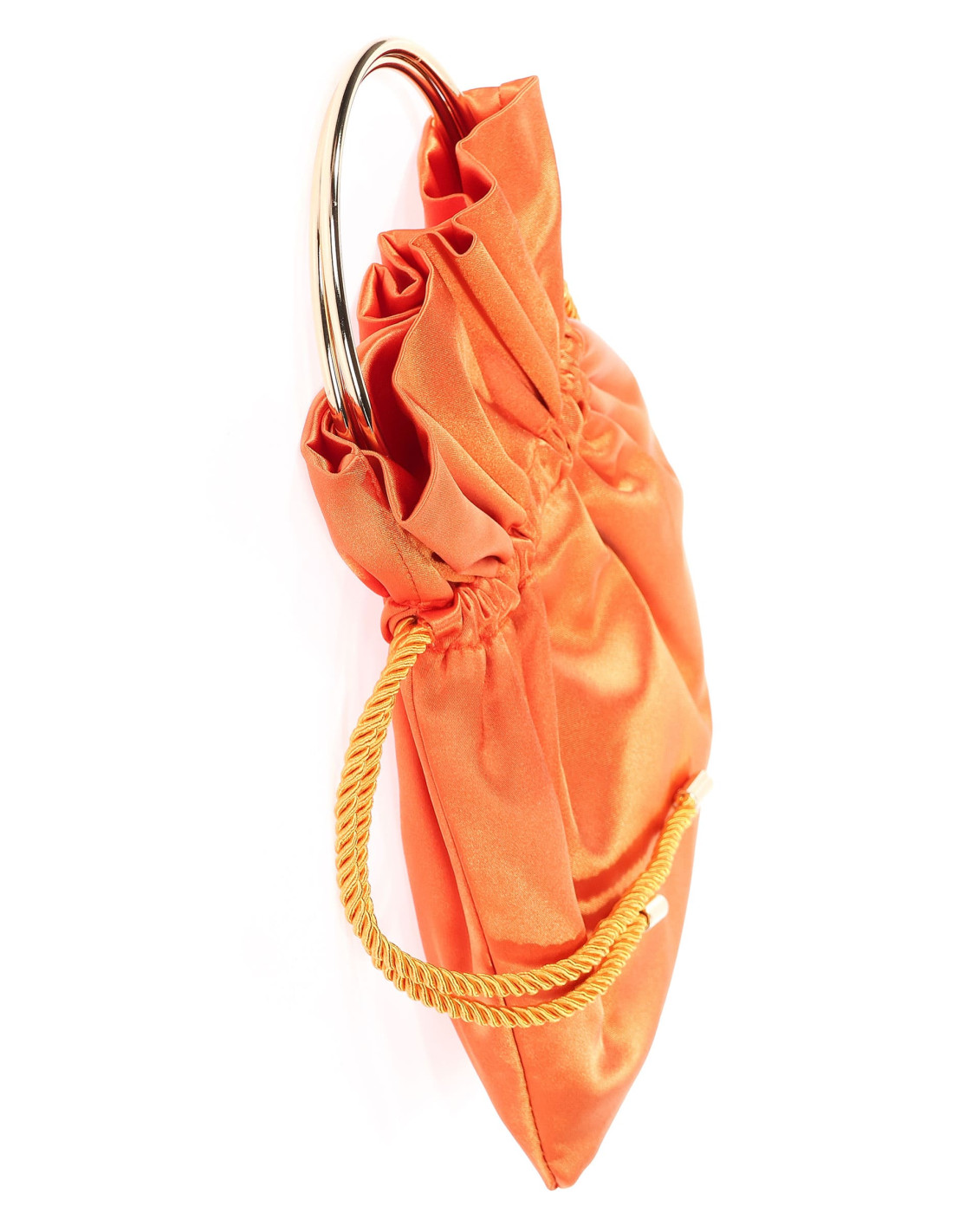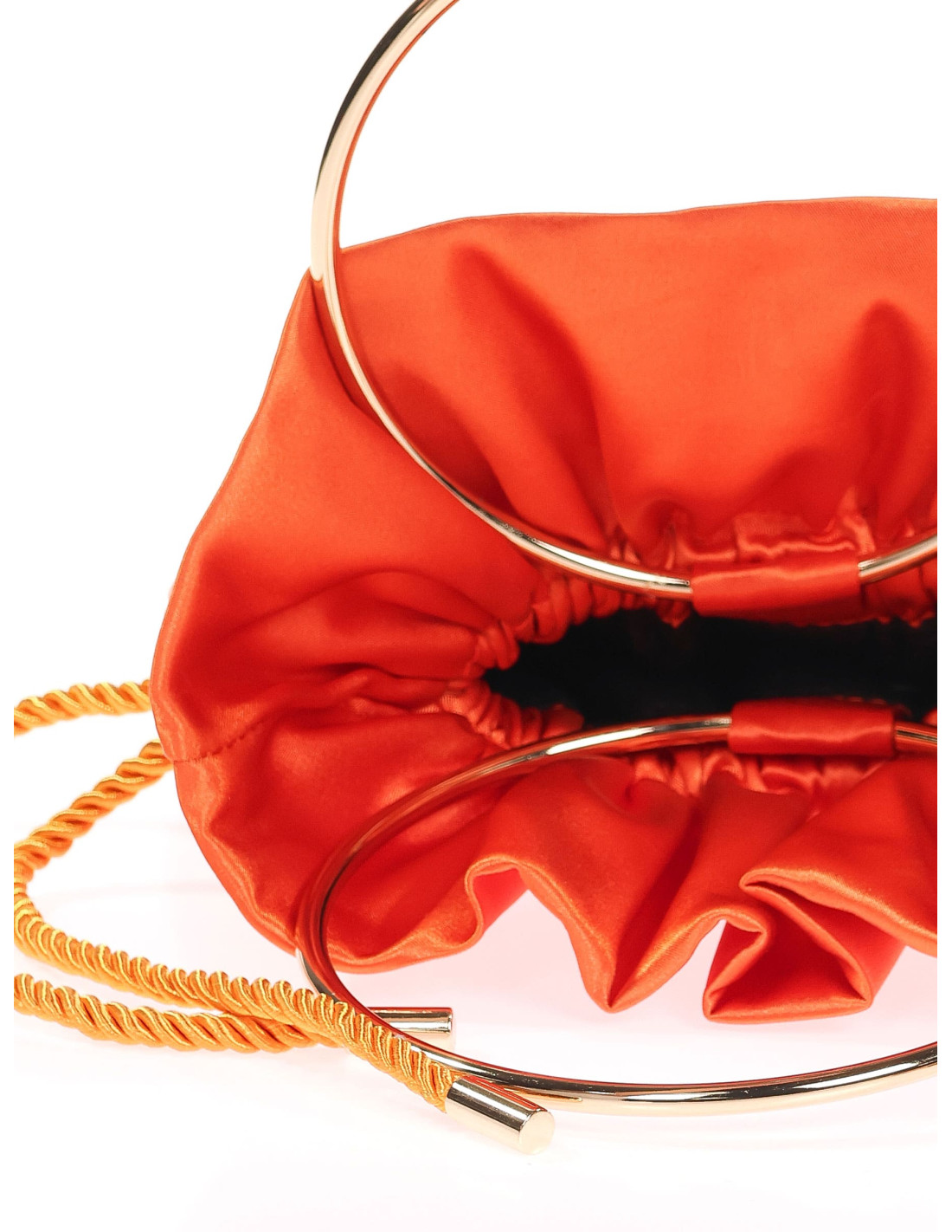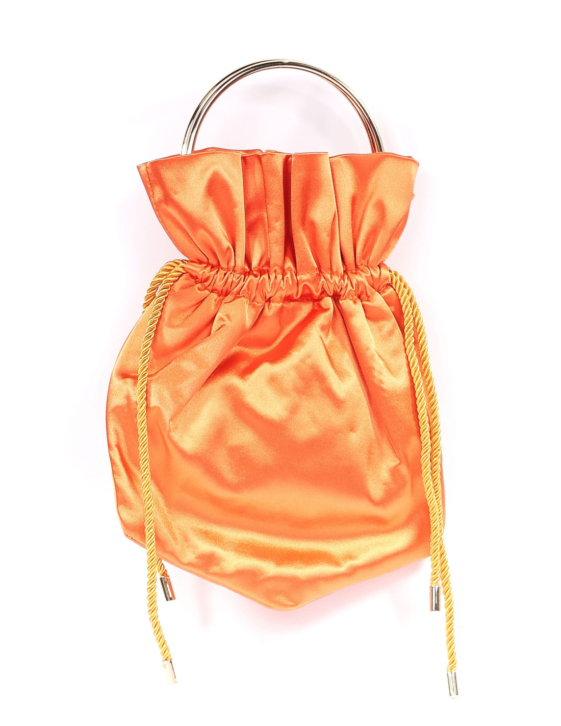 Este bolso bombonera de fiesta en raso es el accesorio imprescindible para elevar cualquier look en eventos especiales. Su diseño fruncido y su tejido satinado lo convierten en un complemento sofisticado y con estilo.