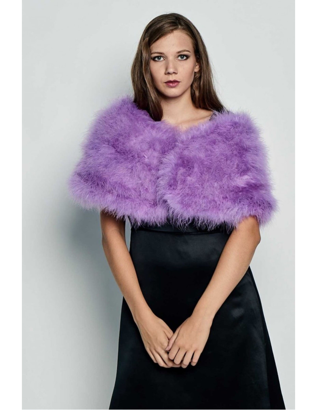 Añade un toque especial a tu look con esta estola de plumas de avestruz auténticas en color lila. Su diseño ligero y su textura suave la convierten en el complemento perfecto para bodas, comuniones y otros eventos elegantes.