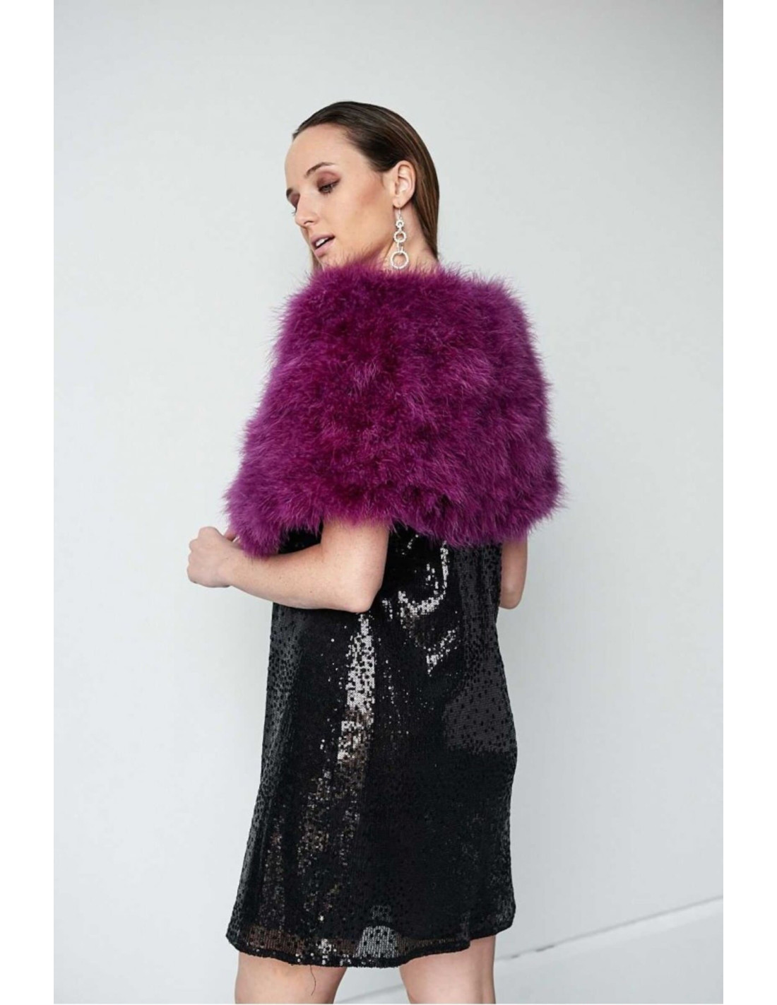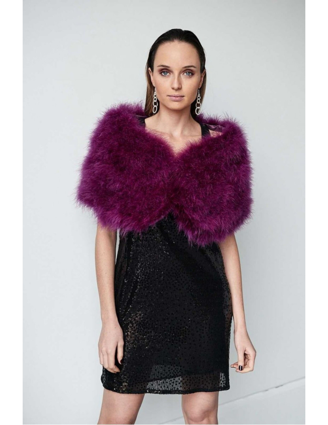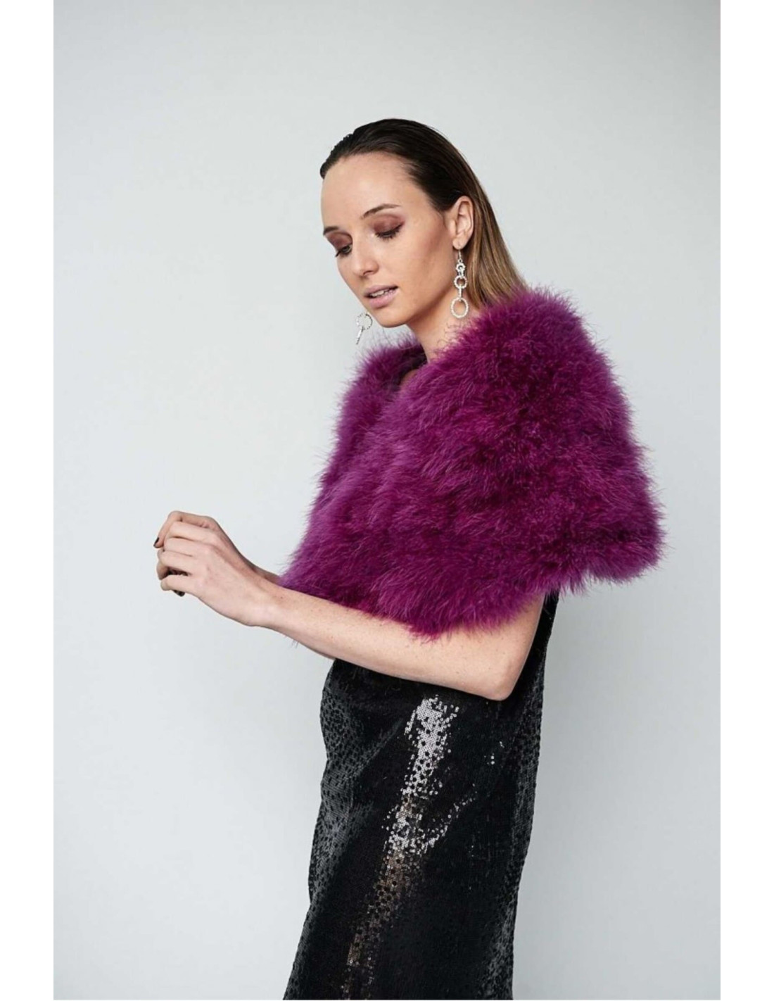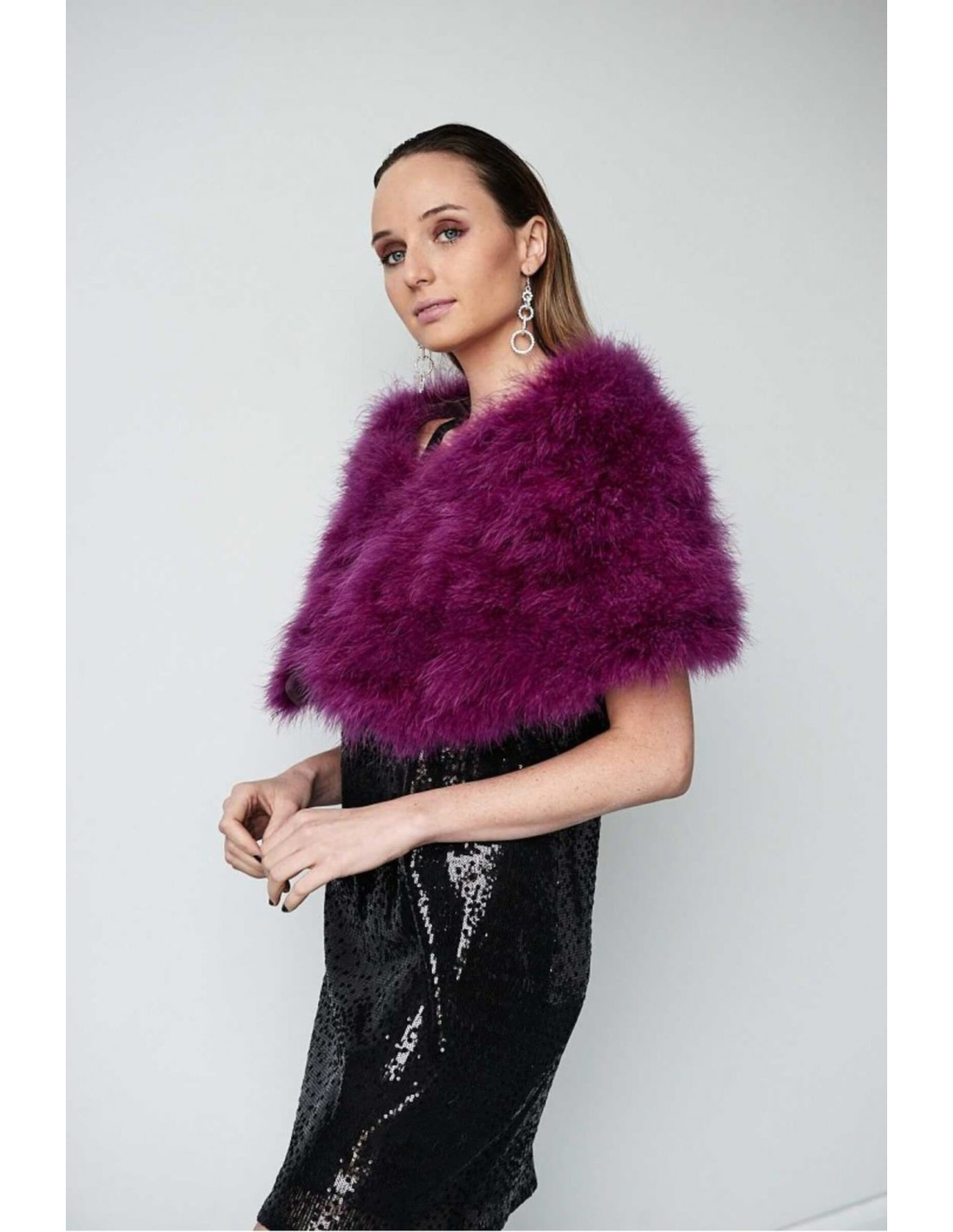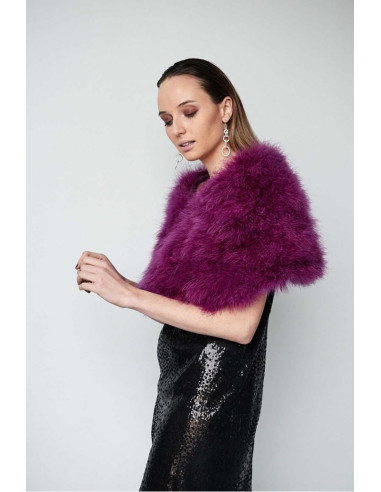Si buscas un complemento llamativo y elegante, esta estola de plumas de avestruz auténticas en color buganvilla es la elección perfecta. Su tono vibrante aporta un toque especial a cualquier look de invitada, haciendo que resaltes con estilo en bodas, eventos y celebraciones especiales.