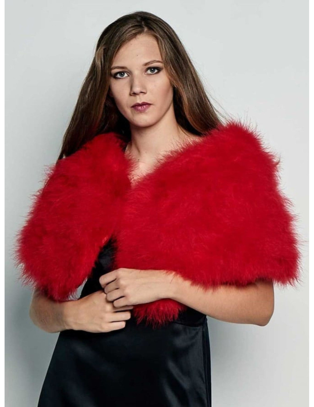 Si buscas un accesorio que combine fuerza, elegancia y un toque de audacia, esta estola de plumas de avestruz auténticas en rojo es la elección perfecta. Su color vibrante y lleno de vida es ideal para darle un giro sofisticado y apasionado a tu look en bodas, fiestas y cualquier evento donde desees destacar.