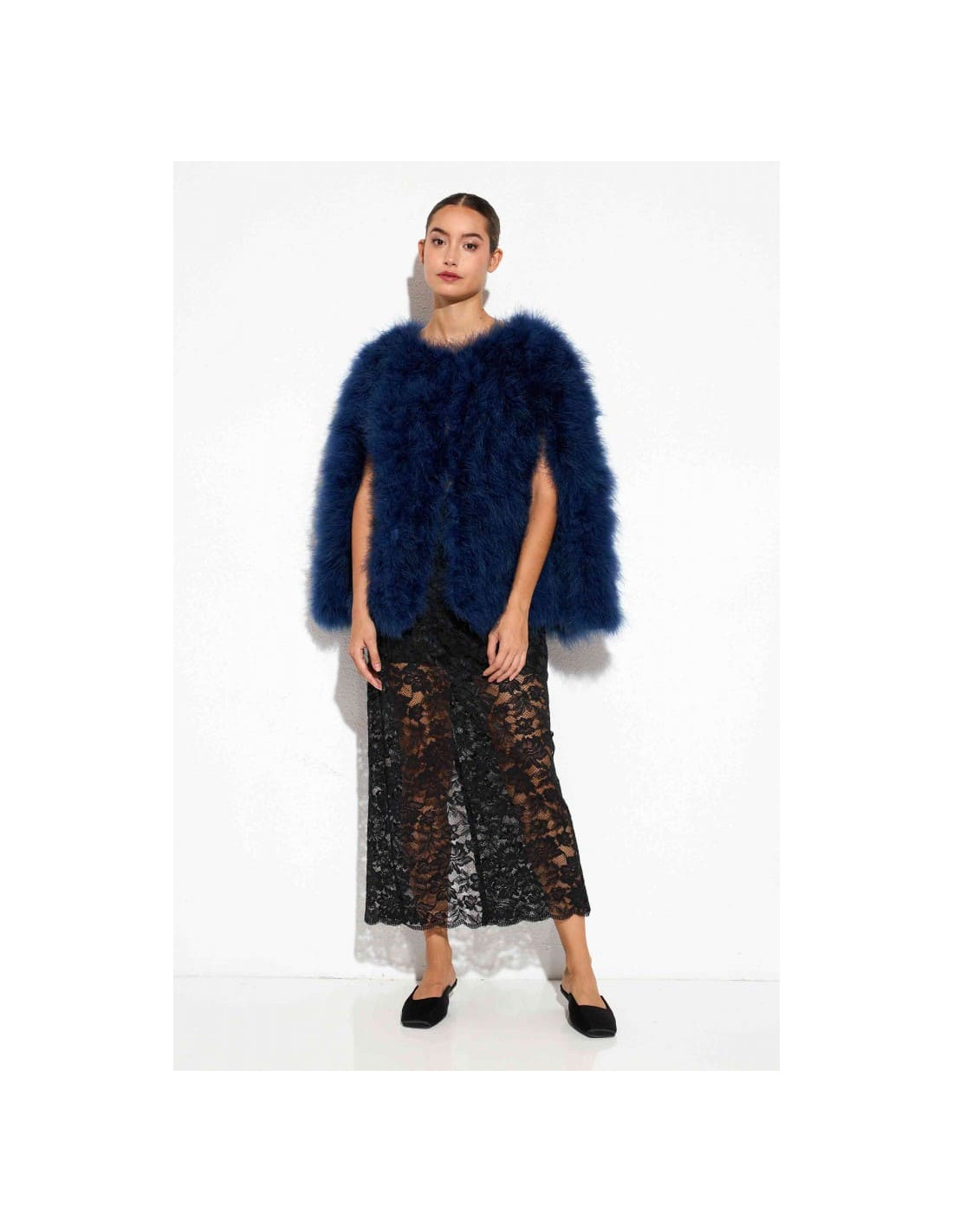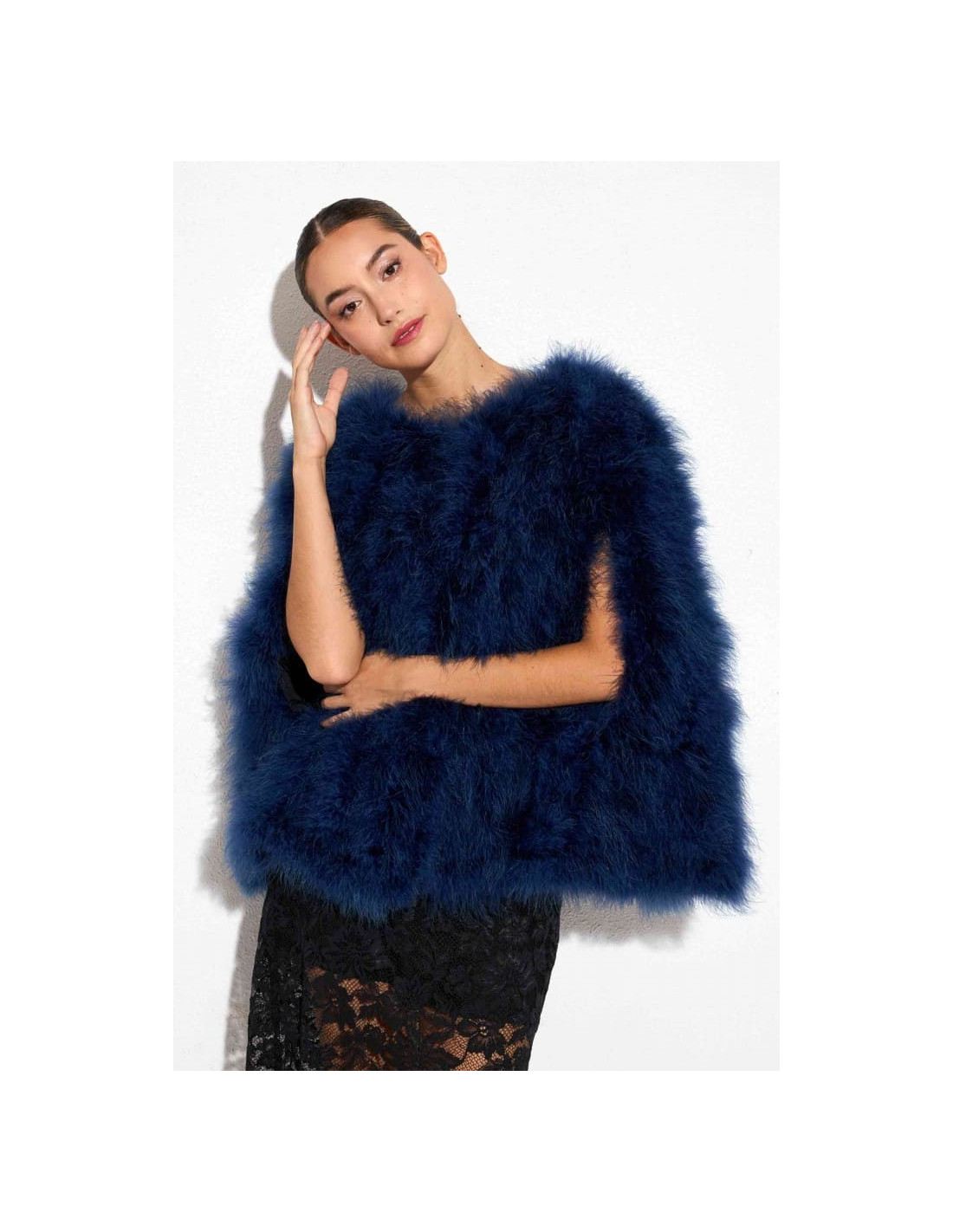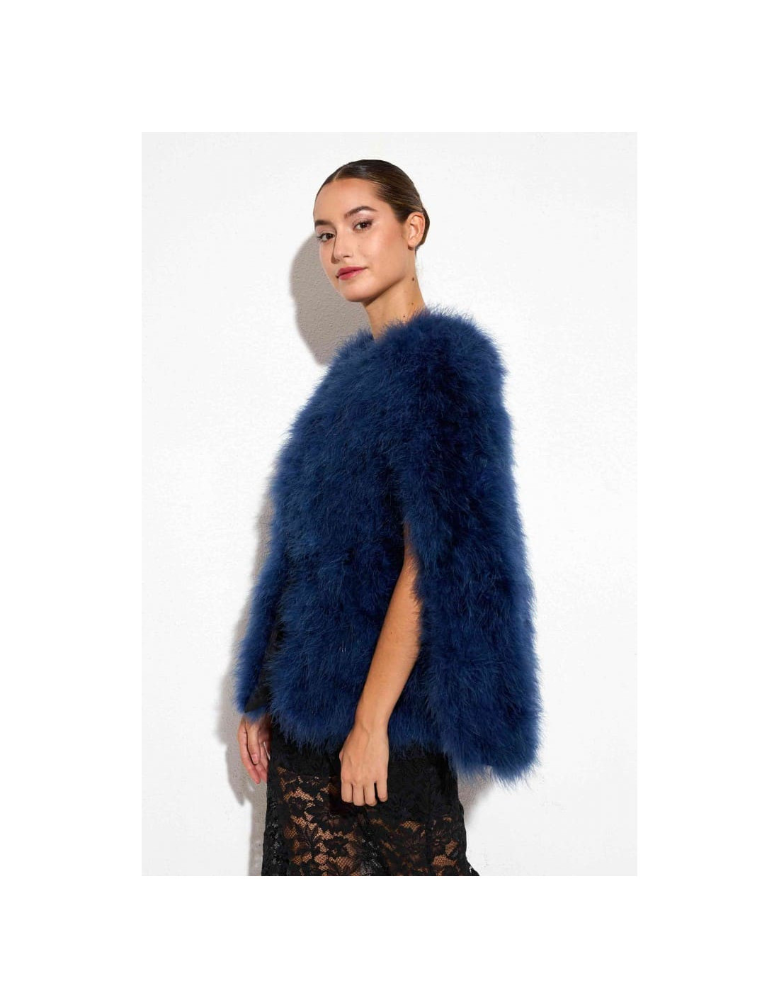 Capa de plumas de avestruz azul marino