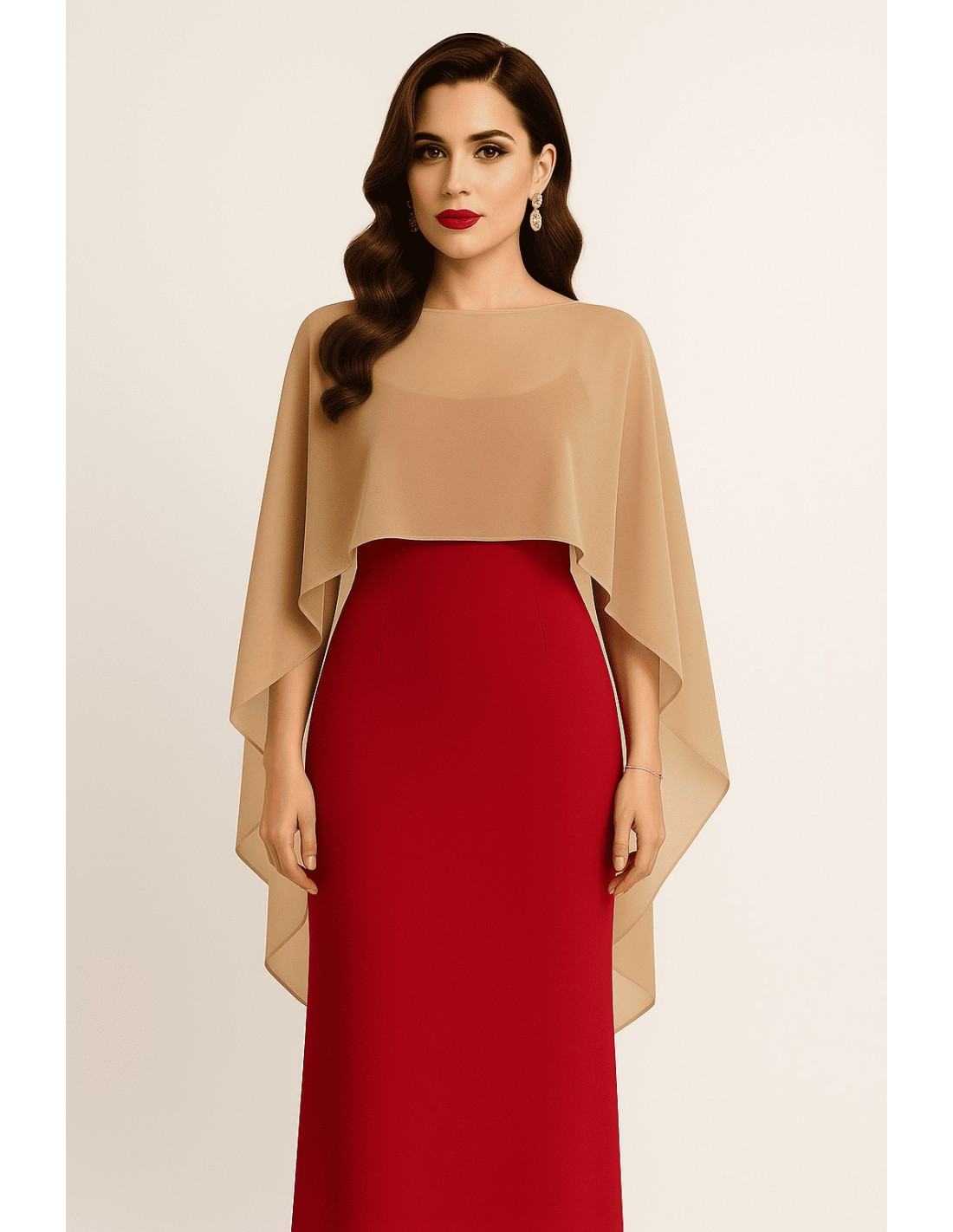 Esta capa de gasa dorada es la aliada perfecta para completar tu look con un aire sofisticado y distinguido. ¡Atrévete a brillar en cada evento! ✨