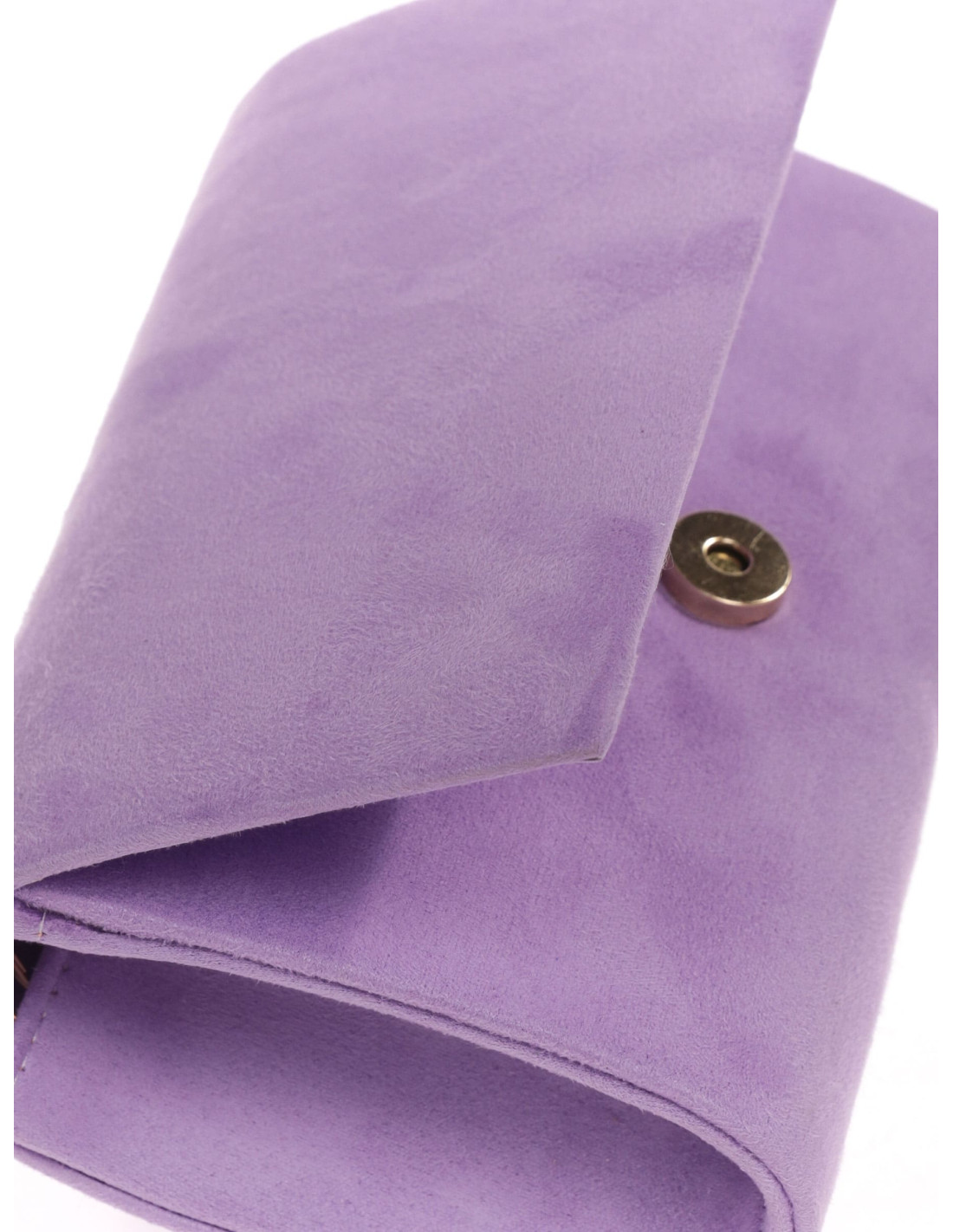 Este bolso de fiesta de efecto ante es el complemento perfecto para elevar tu estilo en cualquier evento especial. Con un diseño elegante y minimalista, está disponible en colores sofisticados como el morado y el azulón, ideales para combinar con una amplia gama de looks.
