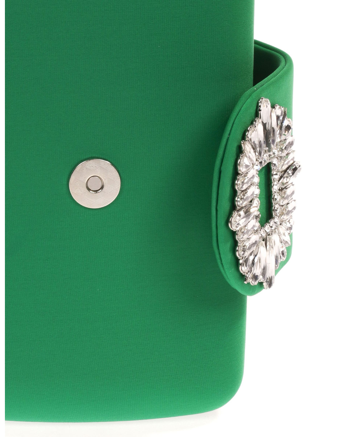 Sumérgete en el lujo con nuestro bolso de fiesta en raso, realzado por exquisitos detalles de pedrería circular en la solapa. Diseñado para destacar en eventos especiales, este accesorio combina a la perfección con vestidos de invitada, añadiendo un toque de sofisticación. Su asa de hombro en cadena y cierre magnético lo convierten en una elección elegante y práctica.