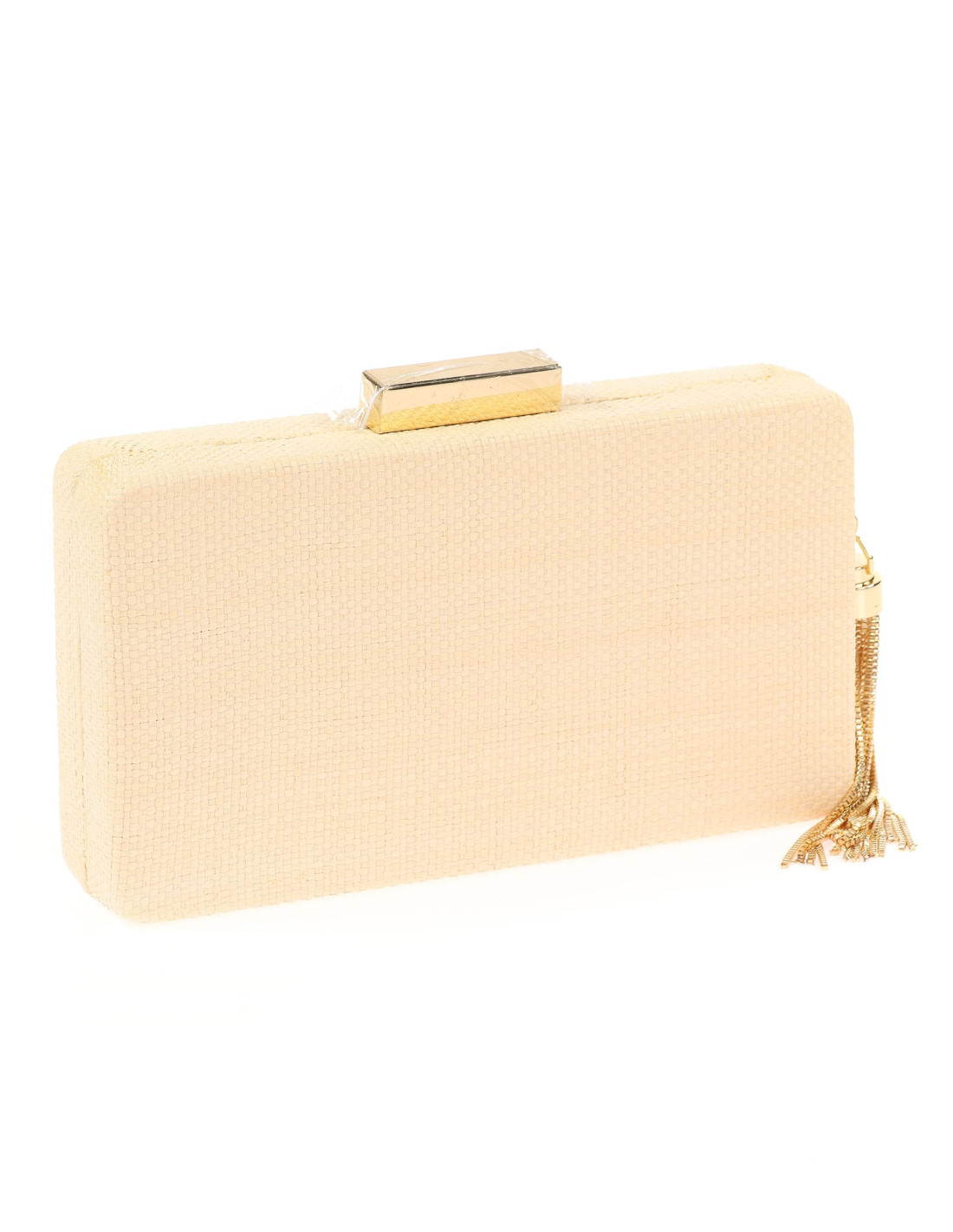 Este bolso de fiesta efecto rafia es el complemento ideal para tus eventos especiales como bodasgraduacionesfiestas de noche o cualquier ocasión que requiera un toque de elegancia. Su cadena dorada te permite llevarlo cómodamente al hombro, mientras que la borla con flecos añade un toque único y decorativo.