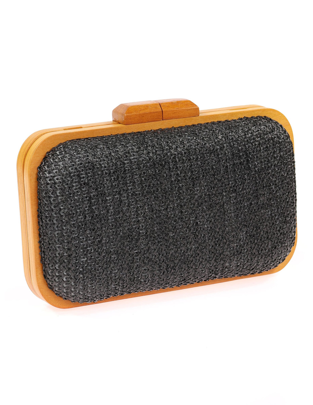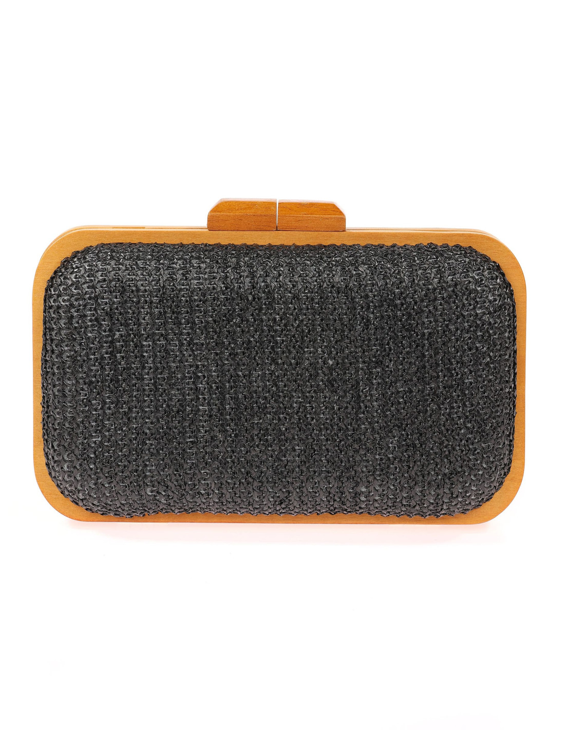 👜 Bolso de fiesta con marco de madera y efecto rafia.