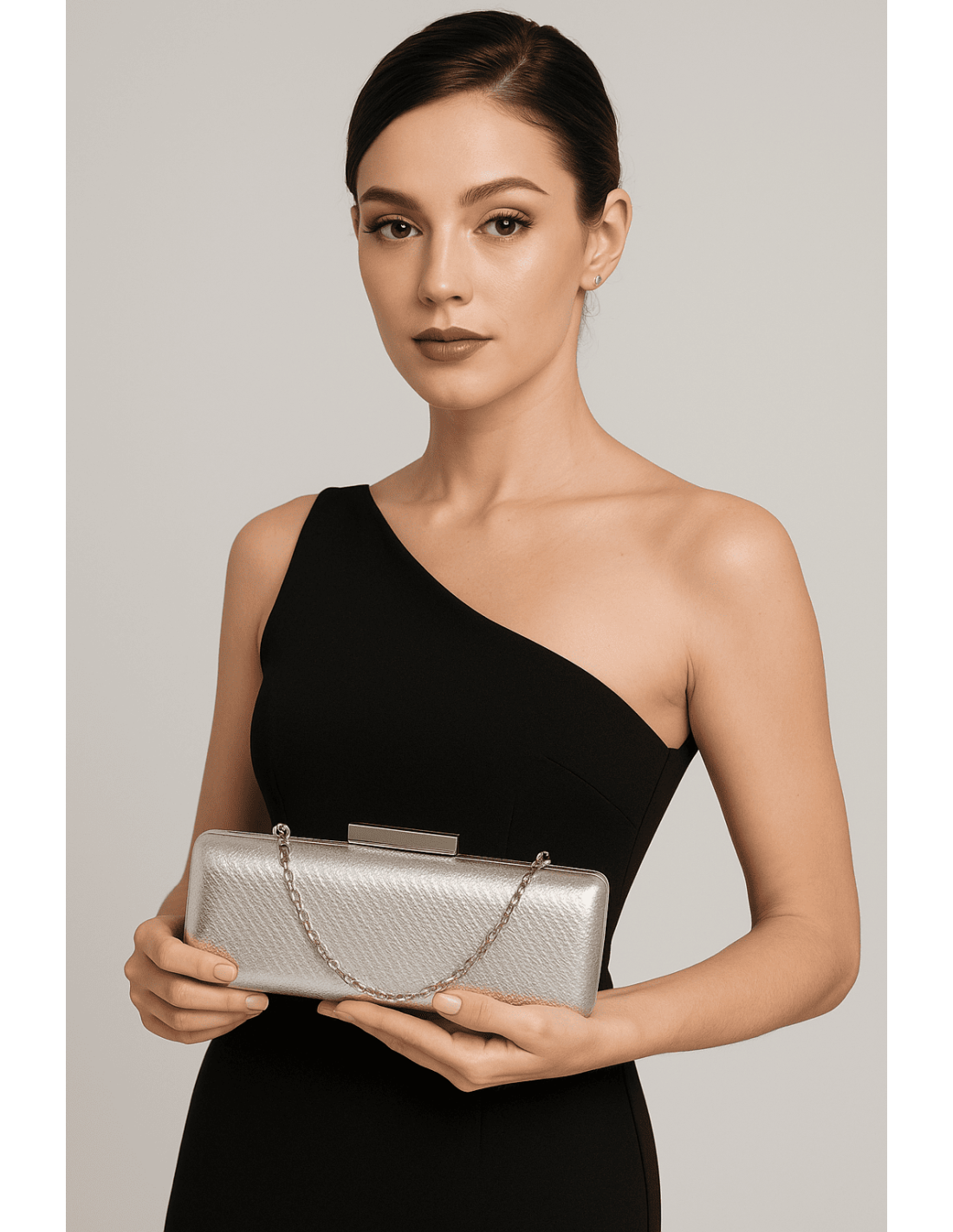 El clutch Glam Belle es tu nuevo imprescindible. Su acabado metalizado y su diseño estructurado elevan cualquier estilismo, ya sea boda, graduación o fiesta. Disponible en tonos clásicos y vibrantes, aporta ese toque glam que hará que todas las miradas vayan hacia ti.