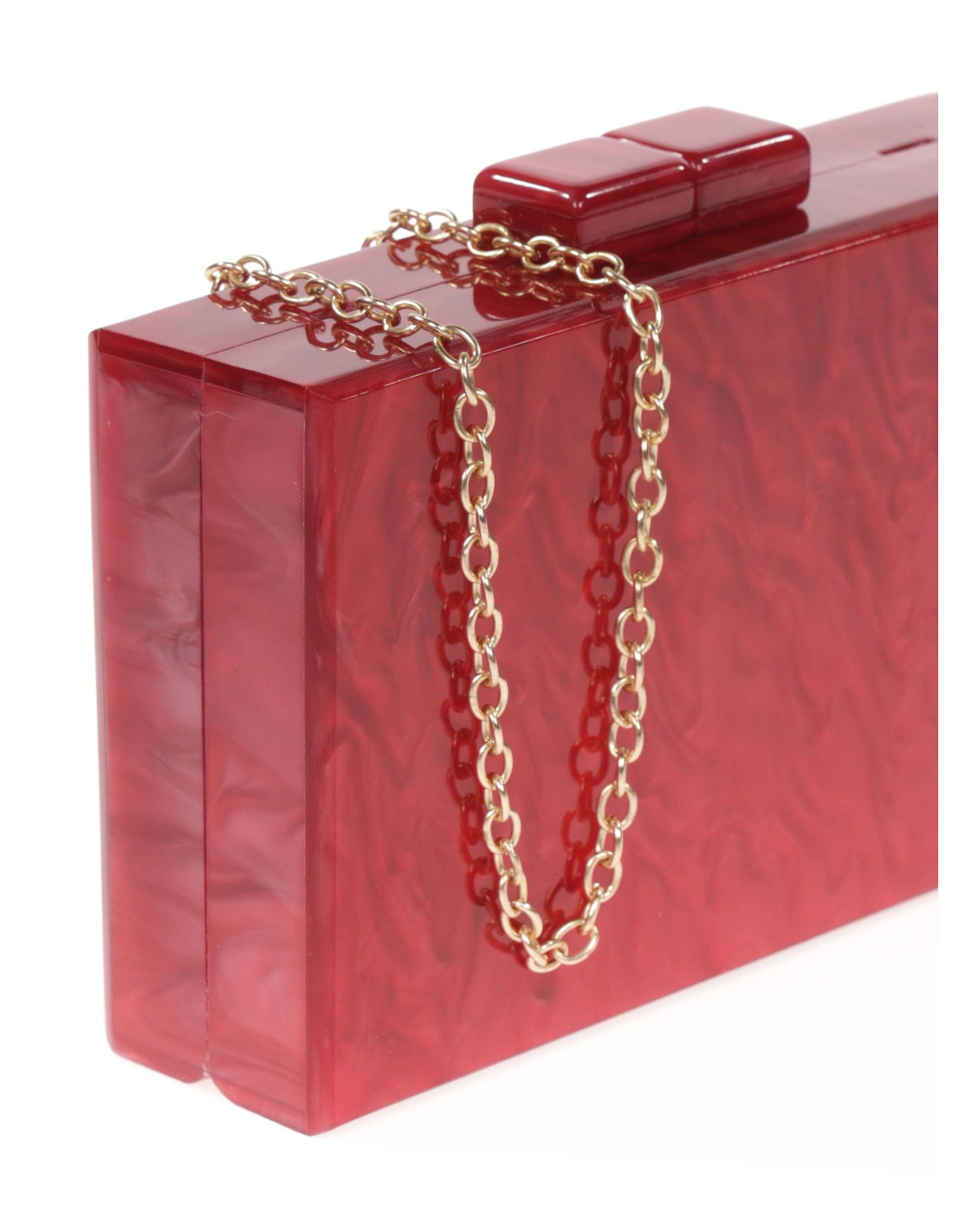 Bolso fiesta nacarado tipo caja rectangular rojo