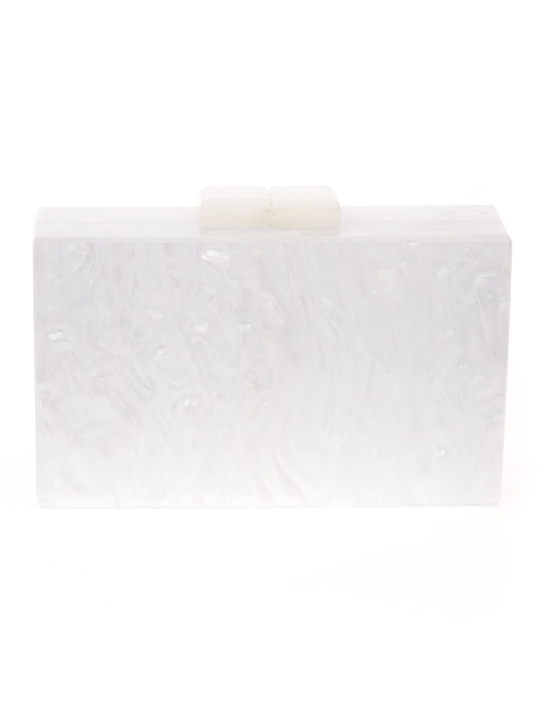 👜 Clutch de fiesta tipo caja con acabado nácar.