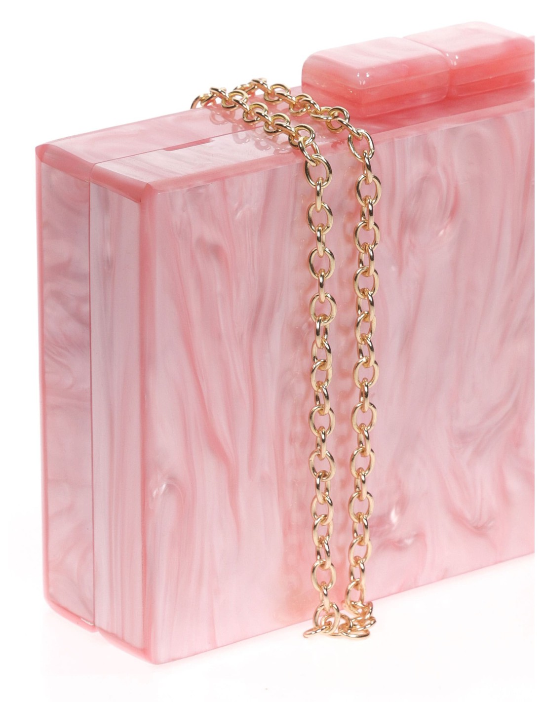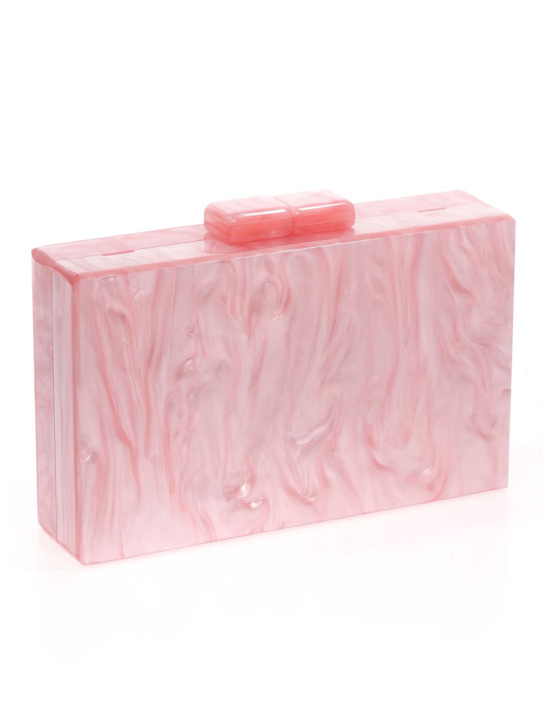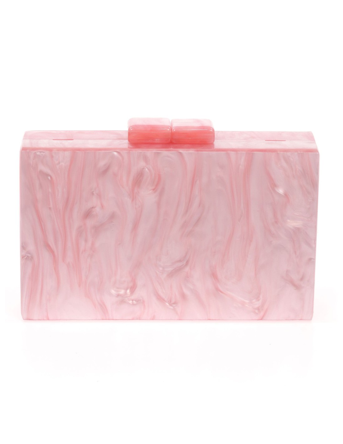 Bolso fiesta nacarado tipo caja rectangular rosa