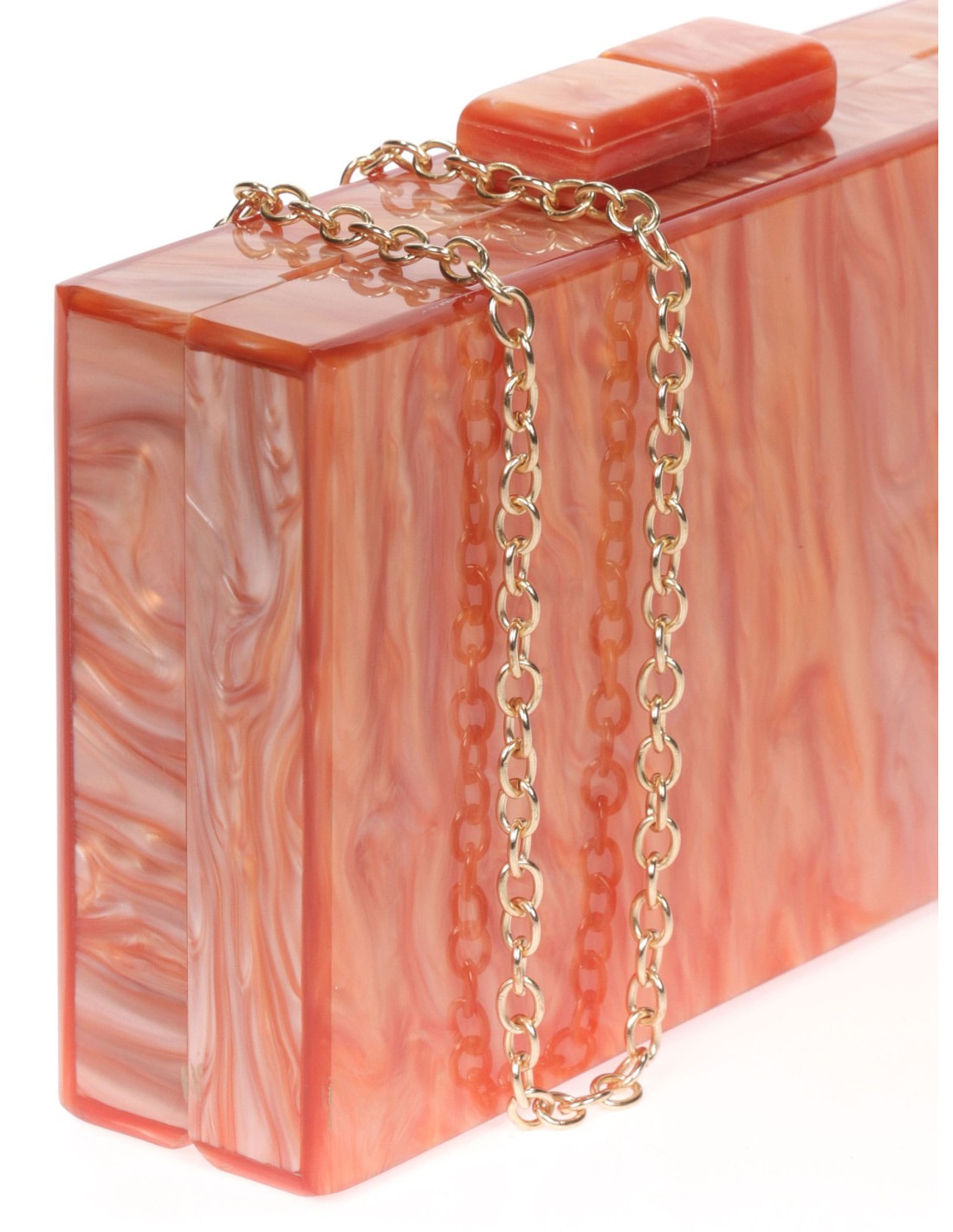 👜 Clutch de fiesta tipo caja con acabado nácar.