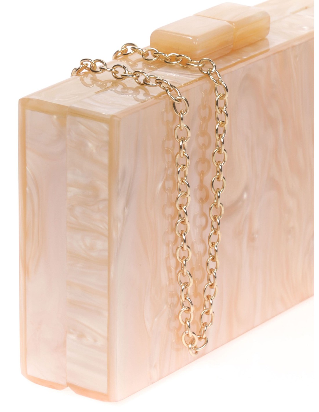👜 Clutch de fiesta tipo caja con acabado nácar.