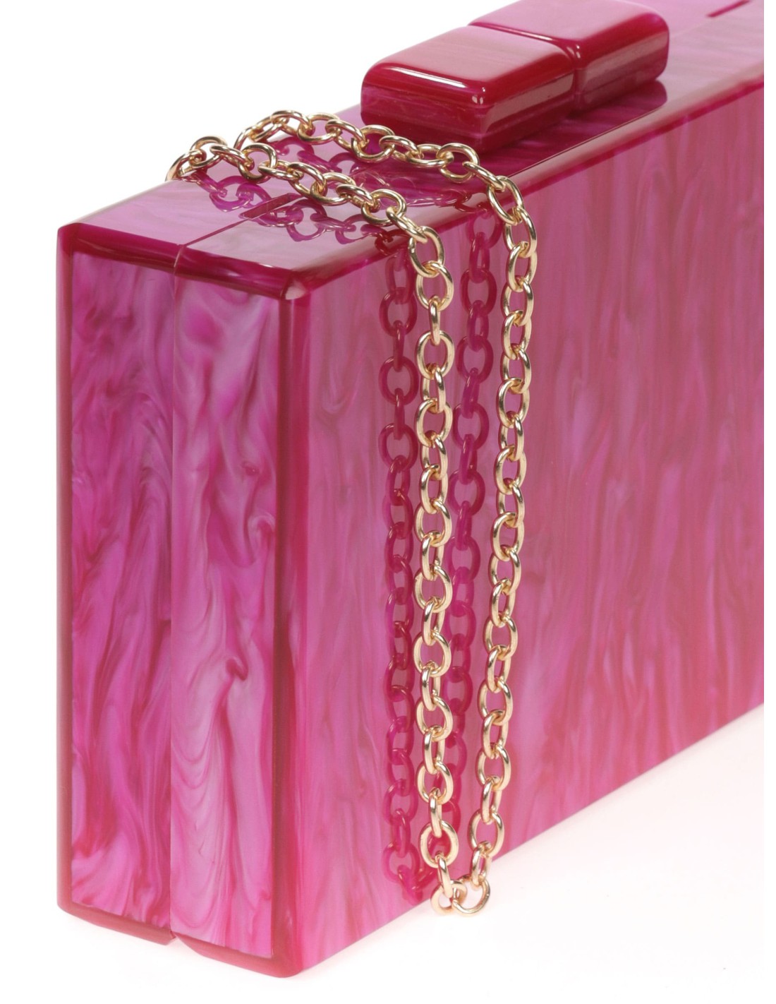 👜 Clutch de fiesta tipo caja con acabado nácar.