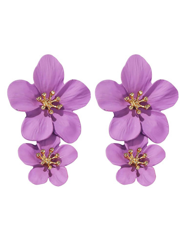 Estos pendientes colgantes de flor ofrecen un toque delicado y elegante para cualquier ocasión especial. Están disponibles en violeta, blanco y verde, aunque si buscas otro color, puedes consultar la disponibilidad. Su diseño floral en dos niveles presenta detalles dorados en los pistilos que añaden un toque sofisticado, perfecto para complementar cualquier look.