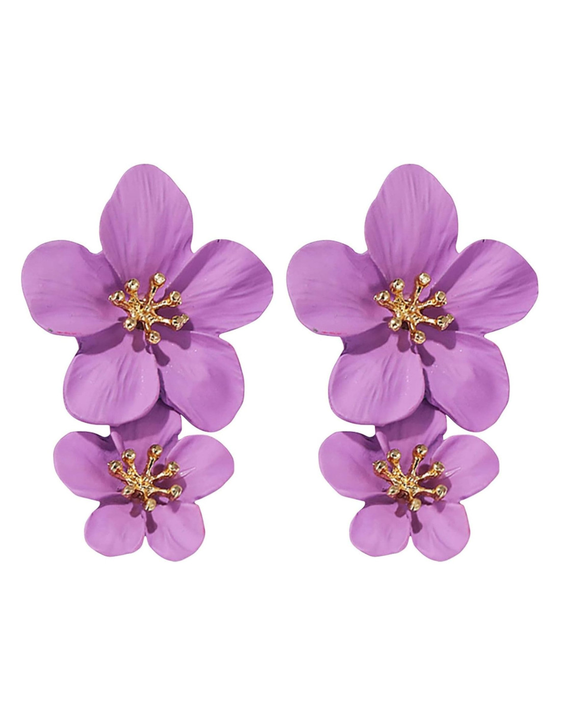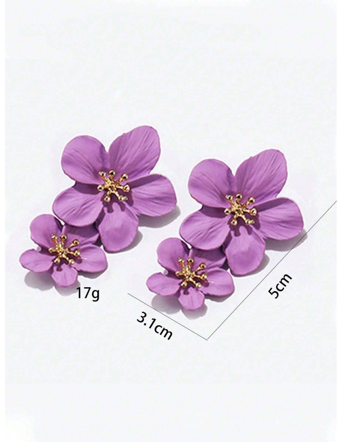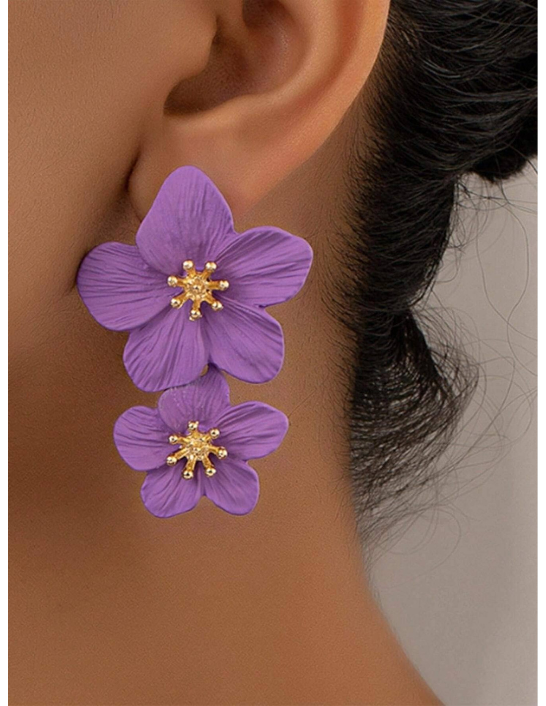 Los pendientes colgantes de flor en tonos como el violeta, blanco y verde se pueden combinar de manera versátil para diferentes ocasiones.