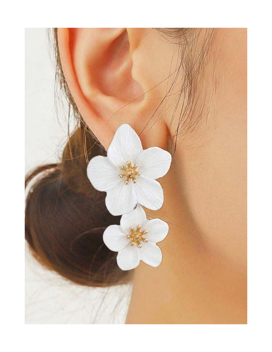 Los pendientes colgantes de flor en tonos como el violeta, blanco y verde se pueden combinar de manera versátil para diferentes ocasiones.
