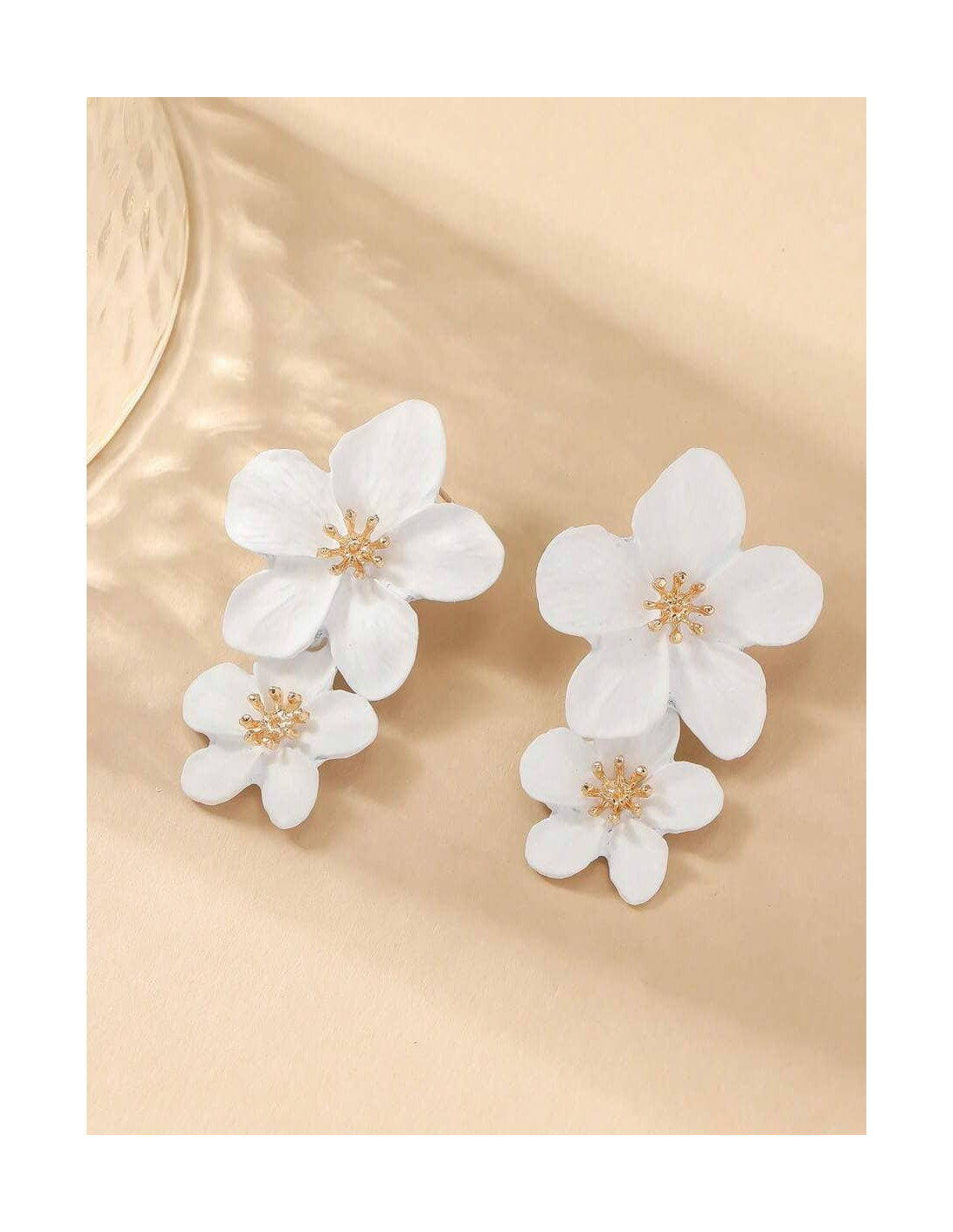 Estos pendientes colgantes de flor ofrecen un toque delicado y elegante para cualquier ocasión especial. Están disponibles en violeta, blanco y verde, aunque si buscas otro color, puedes consultar la disponibilidad. Su diseño floral en dos niveles presenta detalles dorados en los pistilos que añaden un toque sofisticado, perfecto para complementar cualquier look.