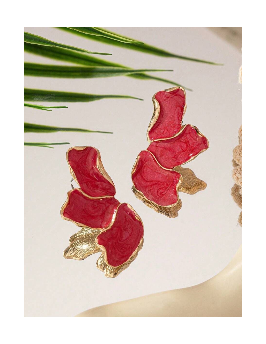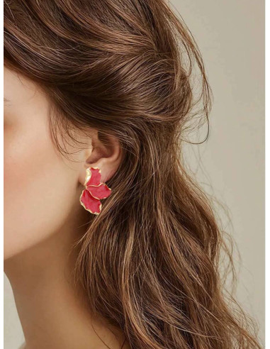 Estos pendientes de pétalos de flor destacan por su elegancia y originalidad. Están hechos de aleación de zinc, con un acabado chapado en oro que les aporta un toque sofisticado, y el interior tiene un efecto marmolado hecho con resina epoxi, lo que los convierte en una joya única y moderna. Su diseño en forma de pétalos por la mitad es ideal para realzar cualquier atuendo.