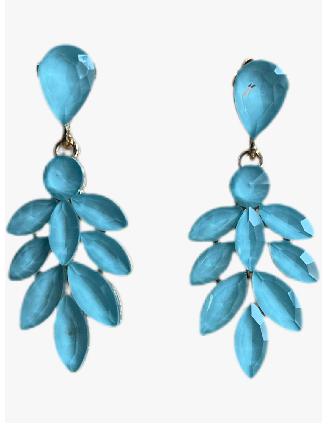 • Pendientes largos de cristales en engarce dorado.