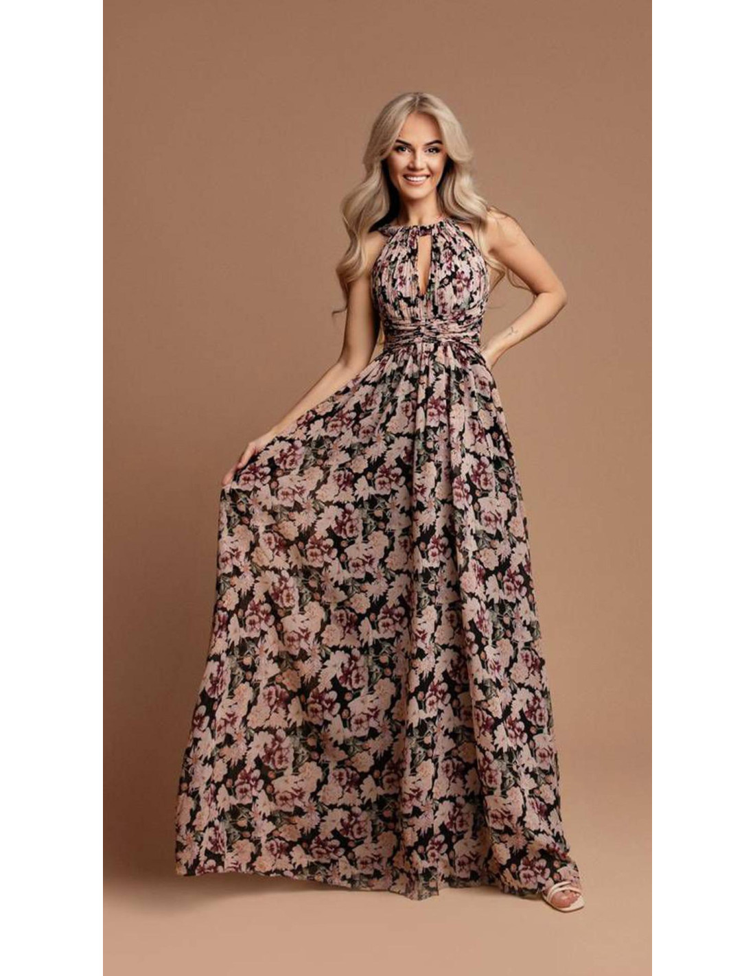 Vestido largo de gasa estampado floral cuello halter