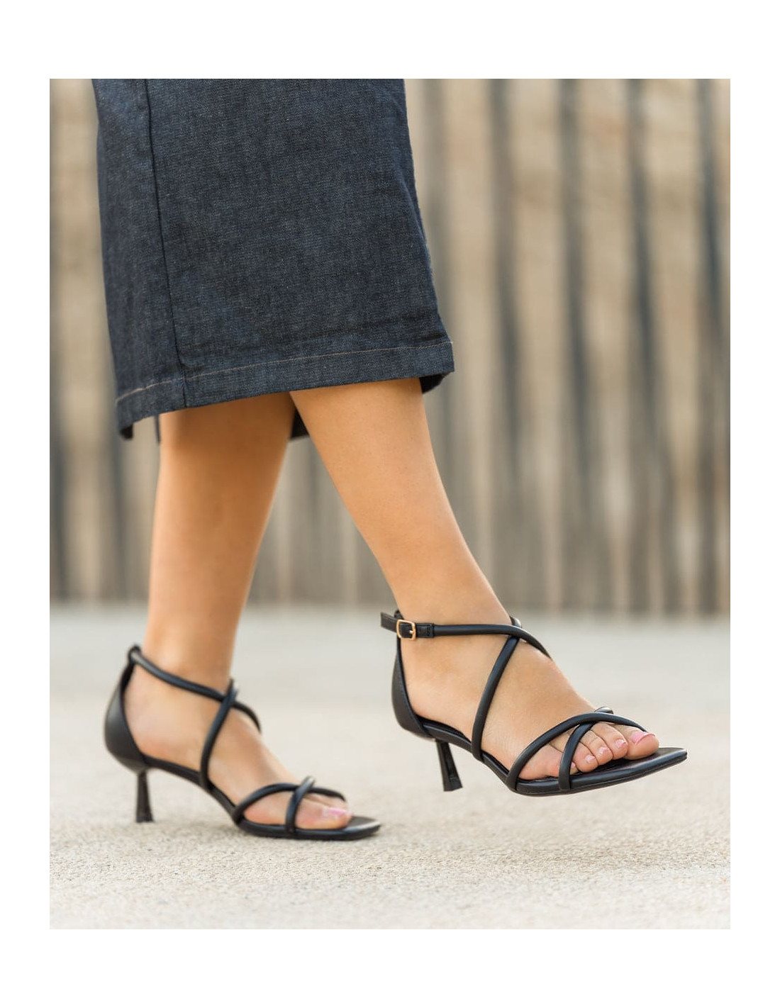 Añade un toque de glamour a tu look con estas elegantes sandalias de fiesta. Su diseño de tiras cruzadas no solo aporta un aire sofisticado, sino que también proporciona un ajuste seguro y cómodo. Con un tacón de 5,5 cm, estas sandalias combinan a la perfección comodidad y estilo, permitiéndote disfrutar de cualquier evento sin renunciar al bienestar.