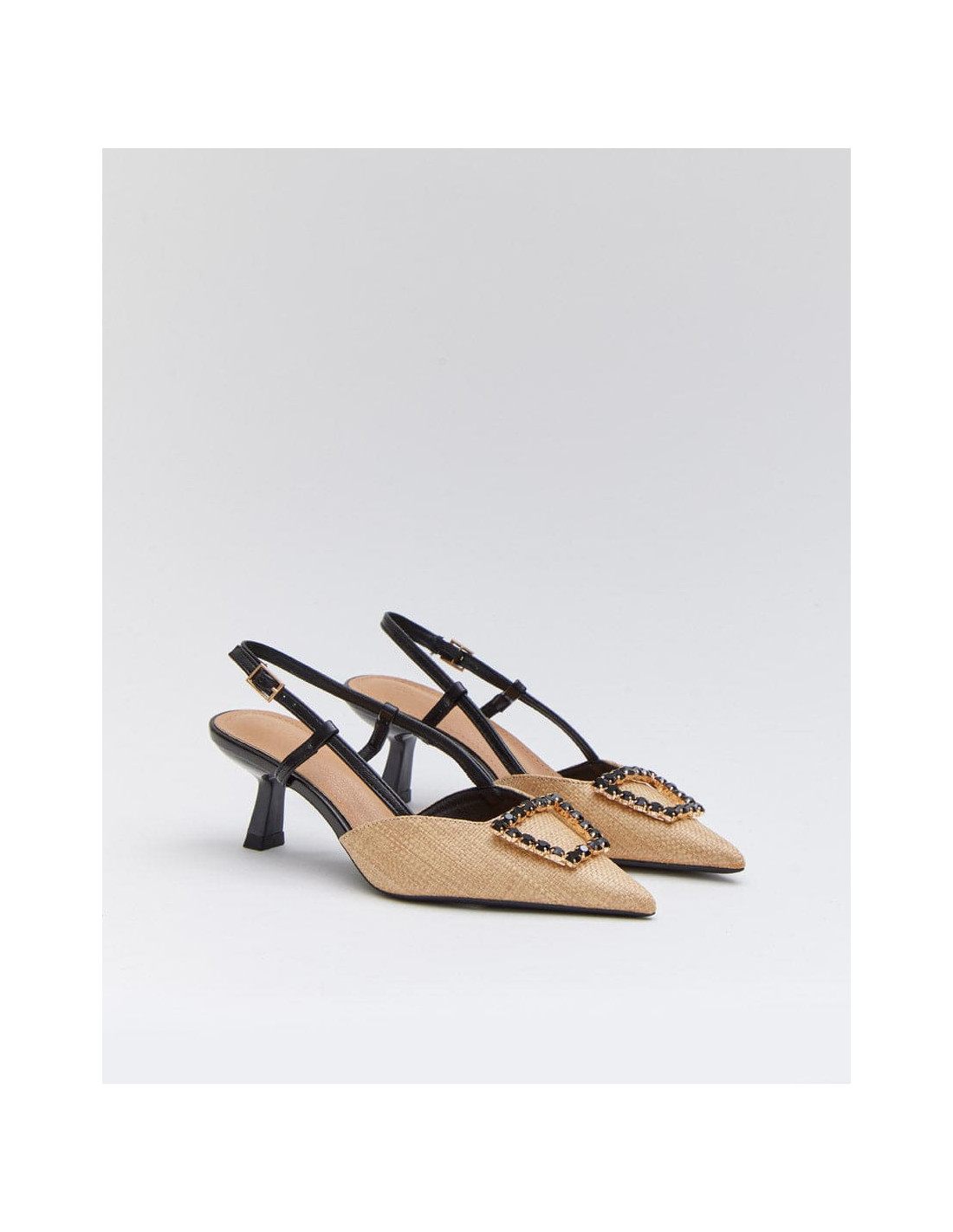 Zapato de tacon bajo destalonado con pedreria | Complementos Invitada